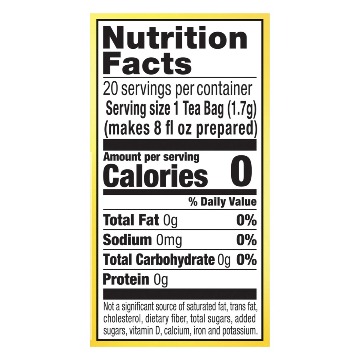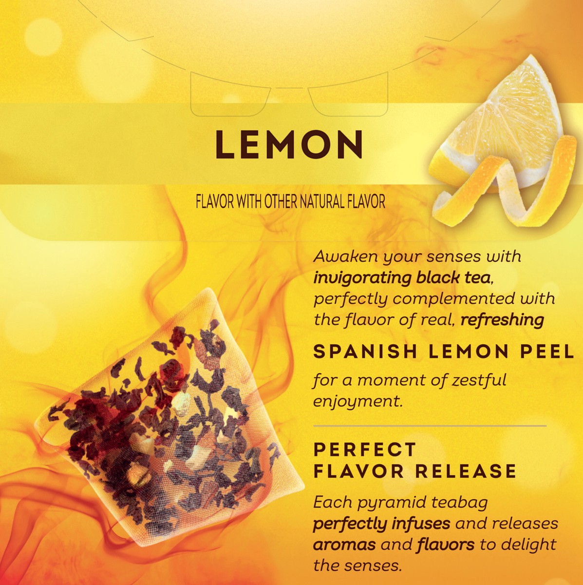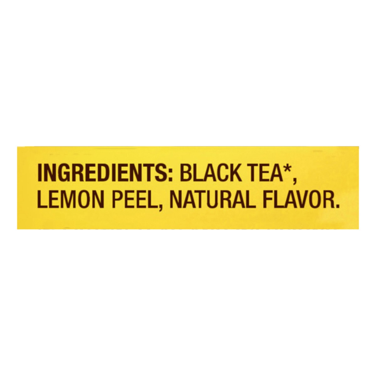 Black Tea (Rainforest Alliance Certified Black Tea, Find Out More at Ra,Org), Lemon Peel, Natural Flavor.