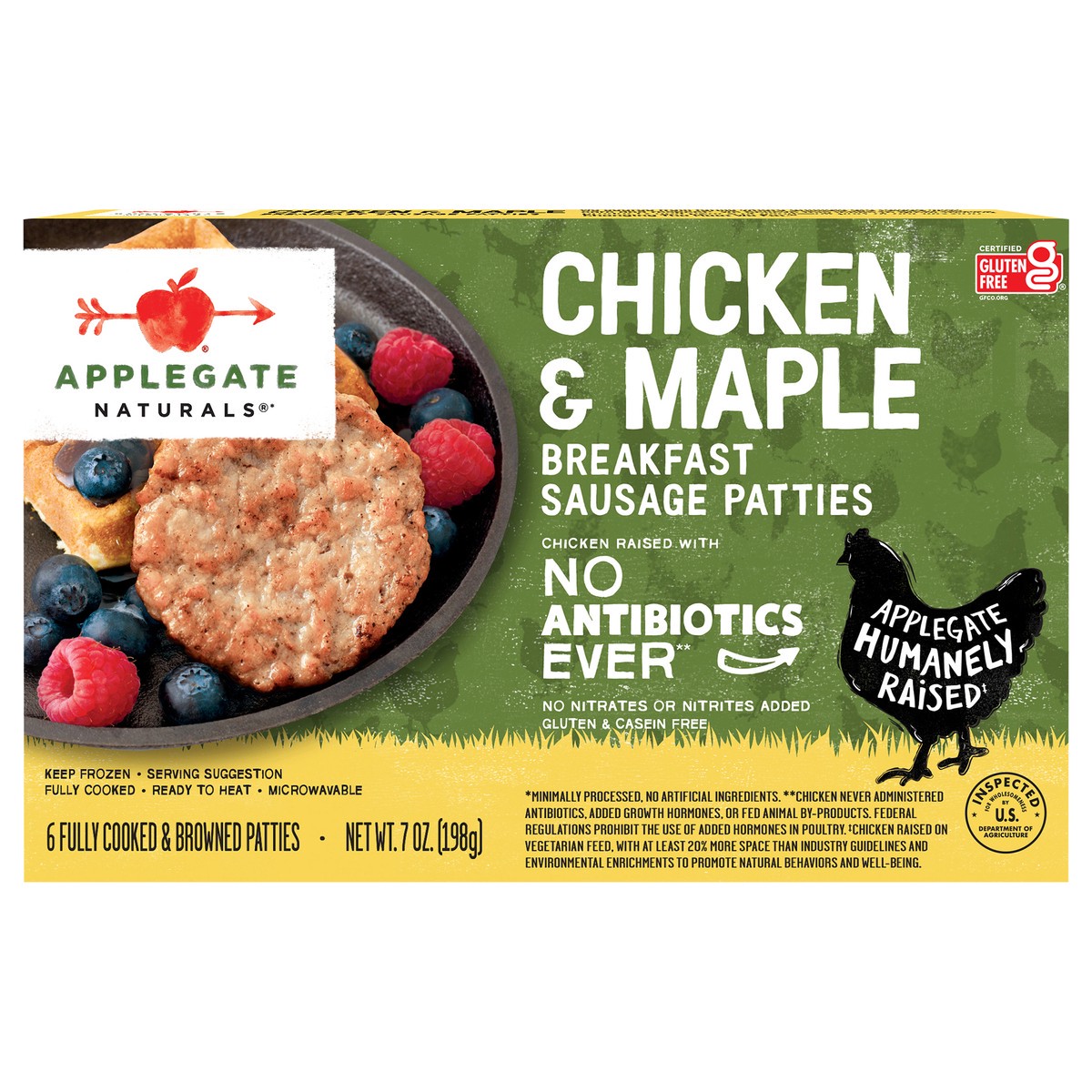- Applegate, Natural Chicken & Maple Breakfast Sausage Patties, 7oz (Frozen)