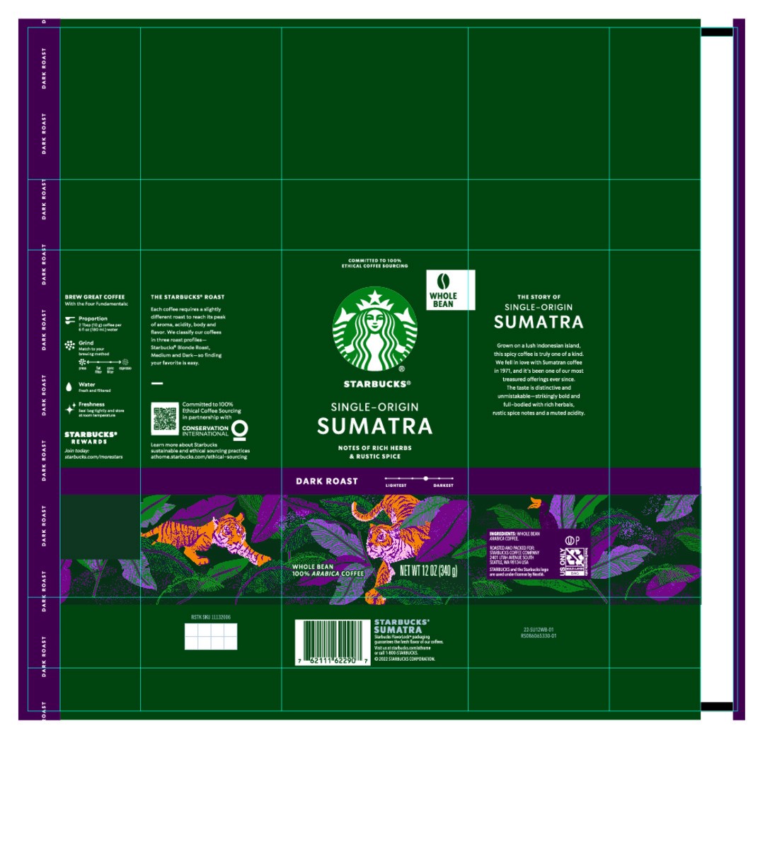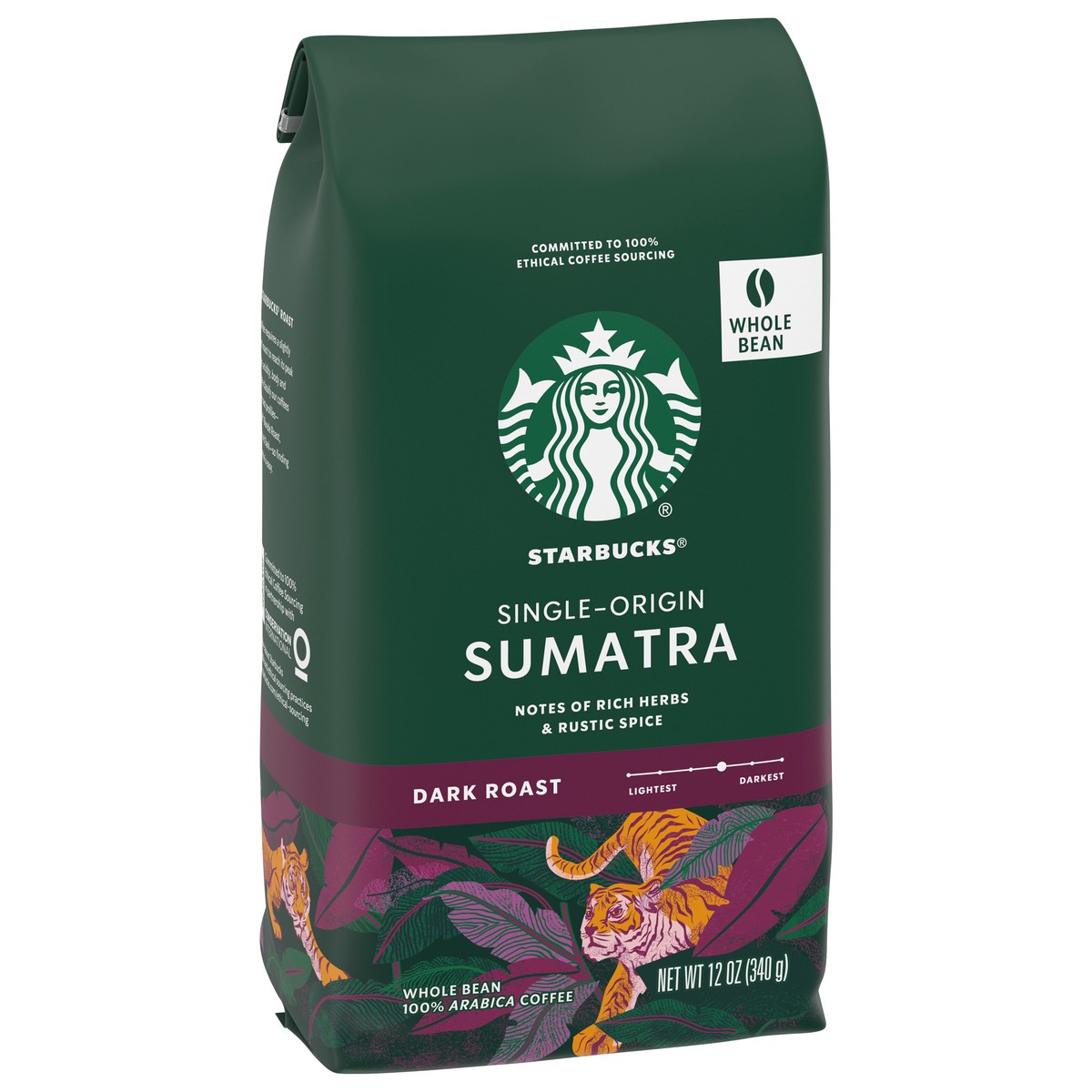 Starbucks Sumatra 100% Arabica Dark Roast Whole Bean Coffee Bag - 12 Oz