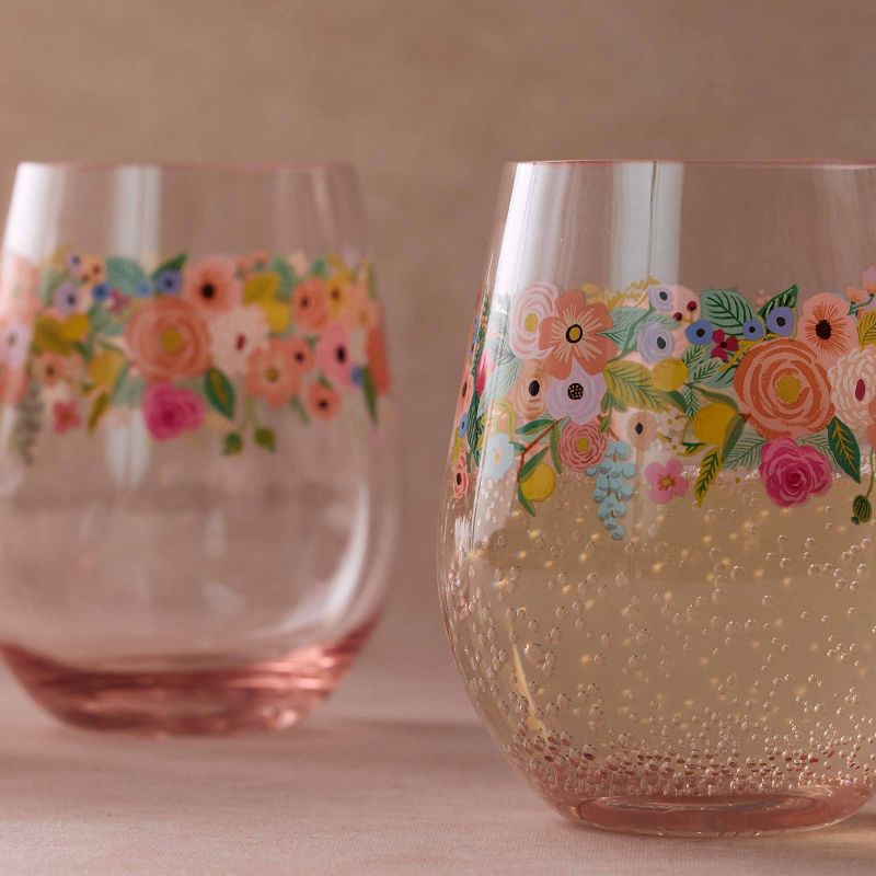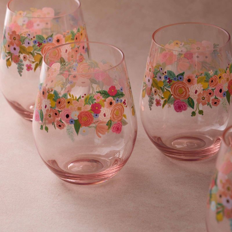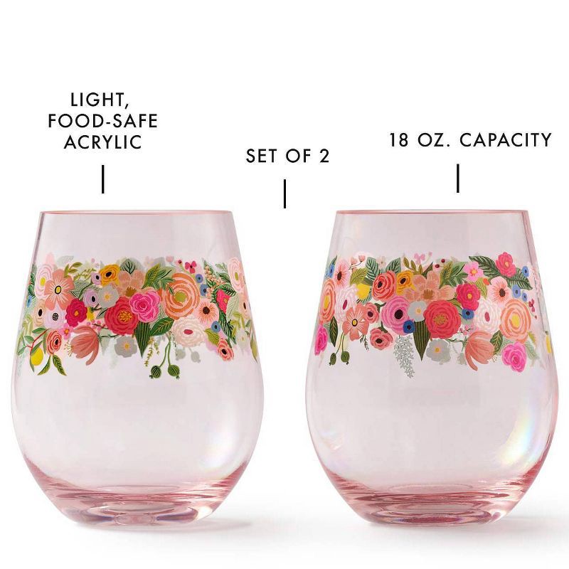 Rifle Paper Co. Garden Party 18oz Acrylic Stemless Wine Glass Set
