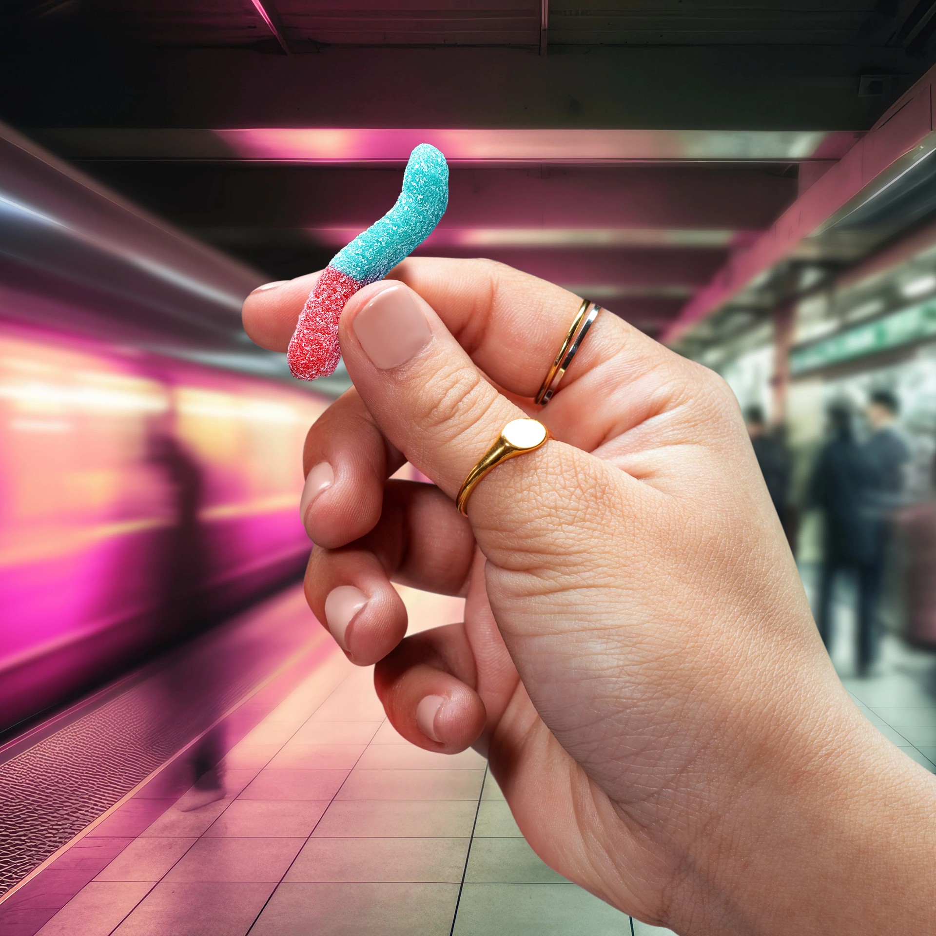 CORN SYRUP, SUGAR, MODIFIED CORN STARCH, GELATIN, FUMARIC ACID, LACTIC ACID, CITRIC ACID, SODIUM CITRATE, CALCIUM LACTATE, SODIUM LACTATE, TITANIUM DIOXIDE (COLOR), NATURAL AND ARTIFICIAL FLAVORS, RED…