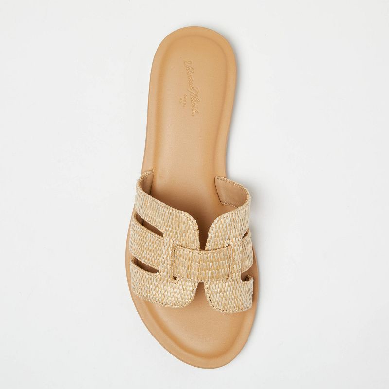 Add a fresh choice to your warm-weather shoe collection with the Carla Sandals with Memory Foam Insole from Universal Thread™. These sandals feature a woven upper design, a flat heel and an open, roun…