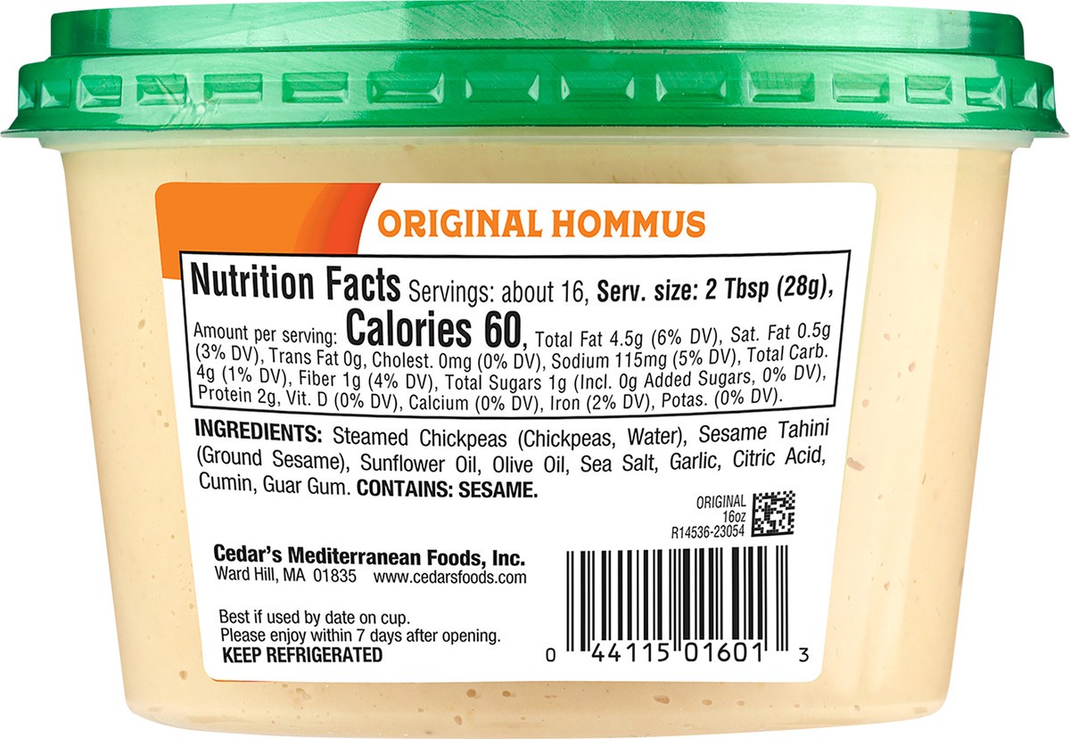 Ah yes, our first flavor. Call it traditional, call it original, but don''t call it “plain hommus.” This perfect blend of chickpeas, tahini and zesty spices is perfect for any occasion and tastes best…