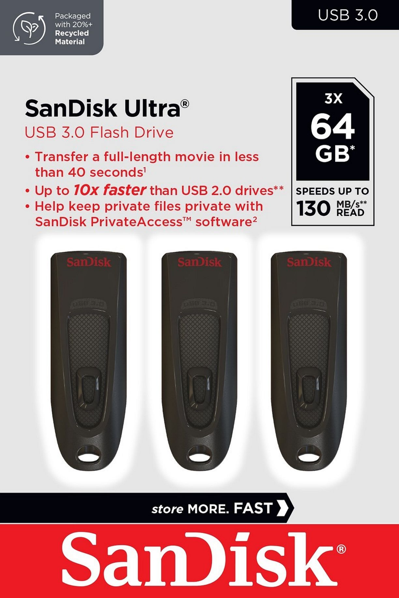 Sandisk Ultra Usb 3.0 Flash Drive, 64Gb, Black