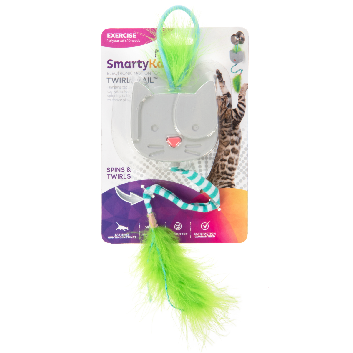 SmartyKat Twirly Tail is an Electronic Motion Toy that hangs with a spinning tail to entice play