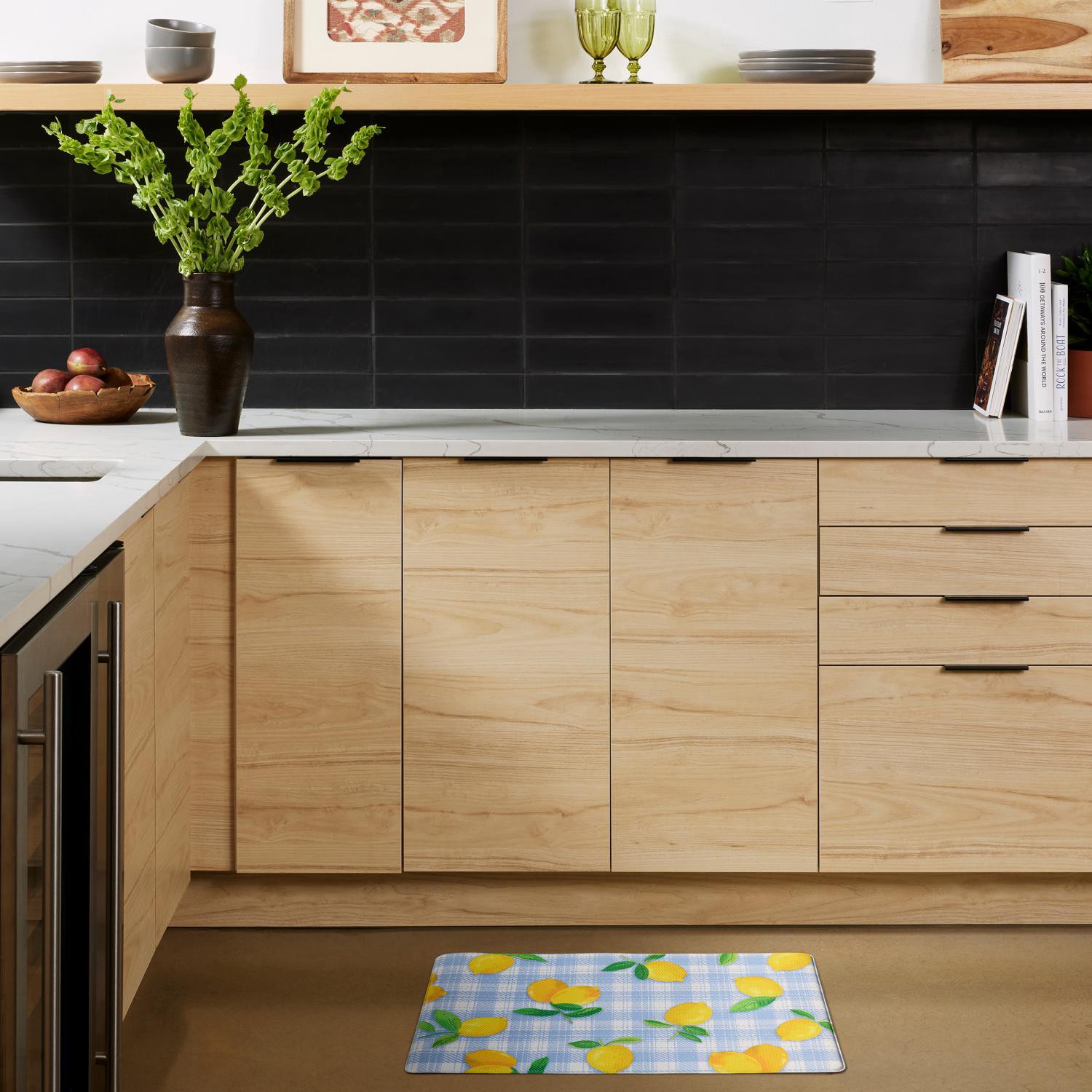 Loloi Gingham Lemons Kitchen Comfort Mat, 20 In X 30 In, Blue