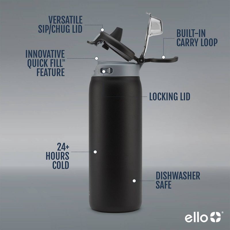 Ello Pop & Fill 18oz Stainless Steel Water Bottle Black