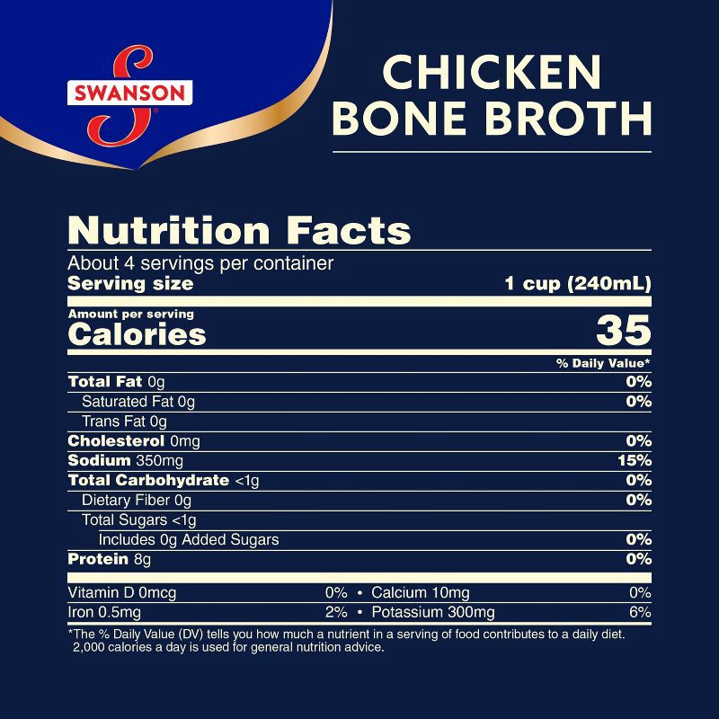 Experience nutritious cooking and savory sipping with Swanson Chicken Bone Broth. We simmer a mix of chicken stock, real bones, vegetables, herbs and spices to create a savory bone broth with rich, fu…