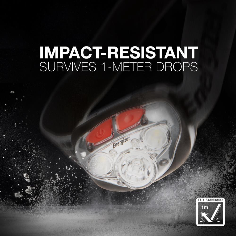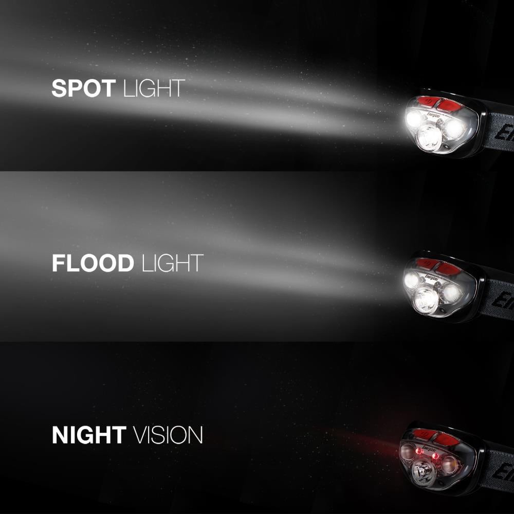 Lightweight and comfortable Energizer Vision HD+ Focus LED Headlamp works with 3 Energizer MAX AAA batteries (batteries included). Powerful beam reaches up to 85 meters and puts out up to 400 lumens w…