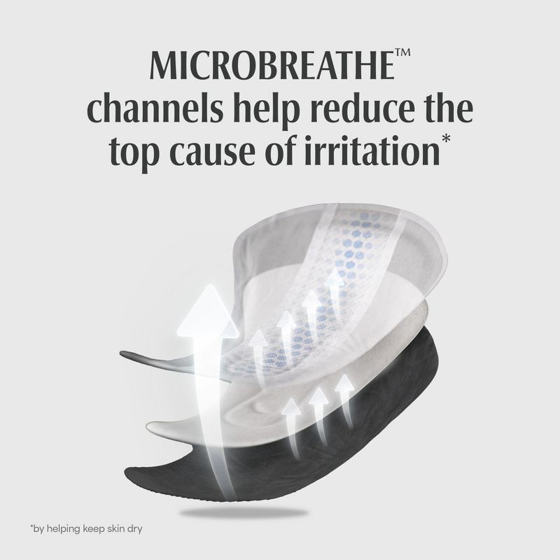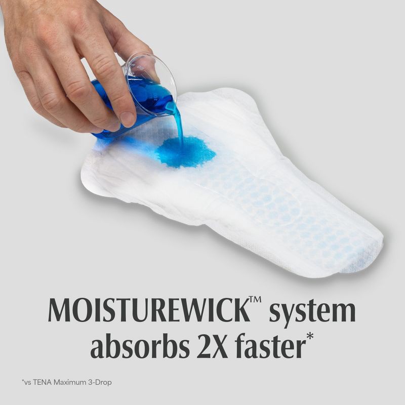 - HELPS REDUCE IRRITATION — MOISTUREWICK System absorbs 2X faster** while MICROBREATHE Channels helps reduce the top cause of irritation by helping keep skin dry (**vs. TENA Maximum 3-Drop)