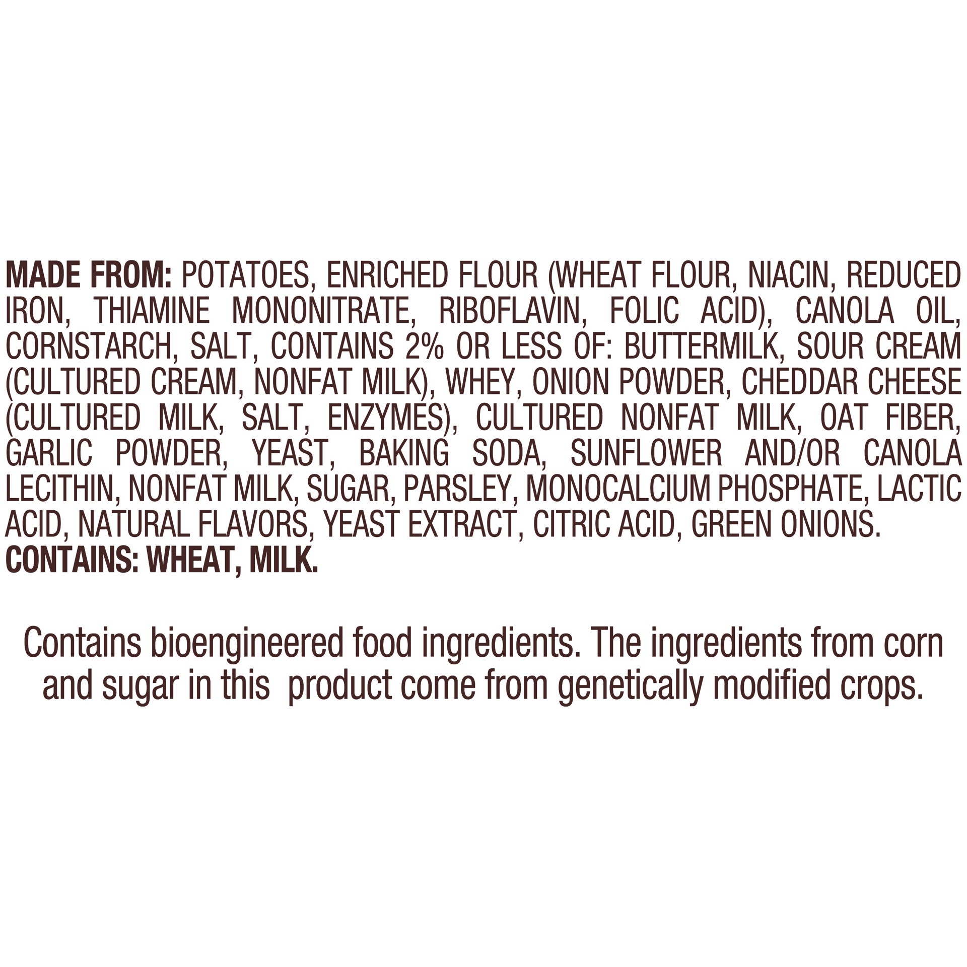 MADE FROM: POTATOES, ENRICHED FLOUR (WHEAT FLOUR, NIACIN, REDUCED IRON, THIAMINE MONONITRATE, RIBOFLAVIN, FOLIC ACID), CANOLA OIL, CORNSTARCH, SALT, CONTAINS 2% OR LESS OF: BUTTERMILK, SOUR CREAM (CUL…