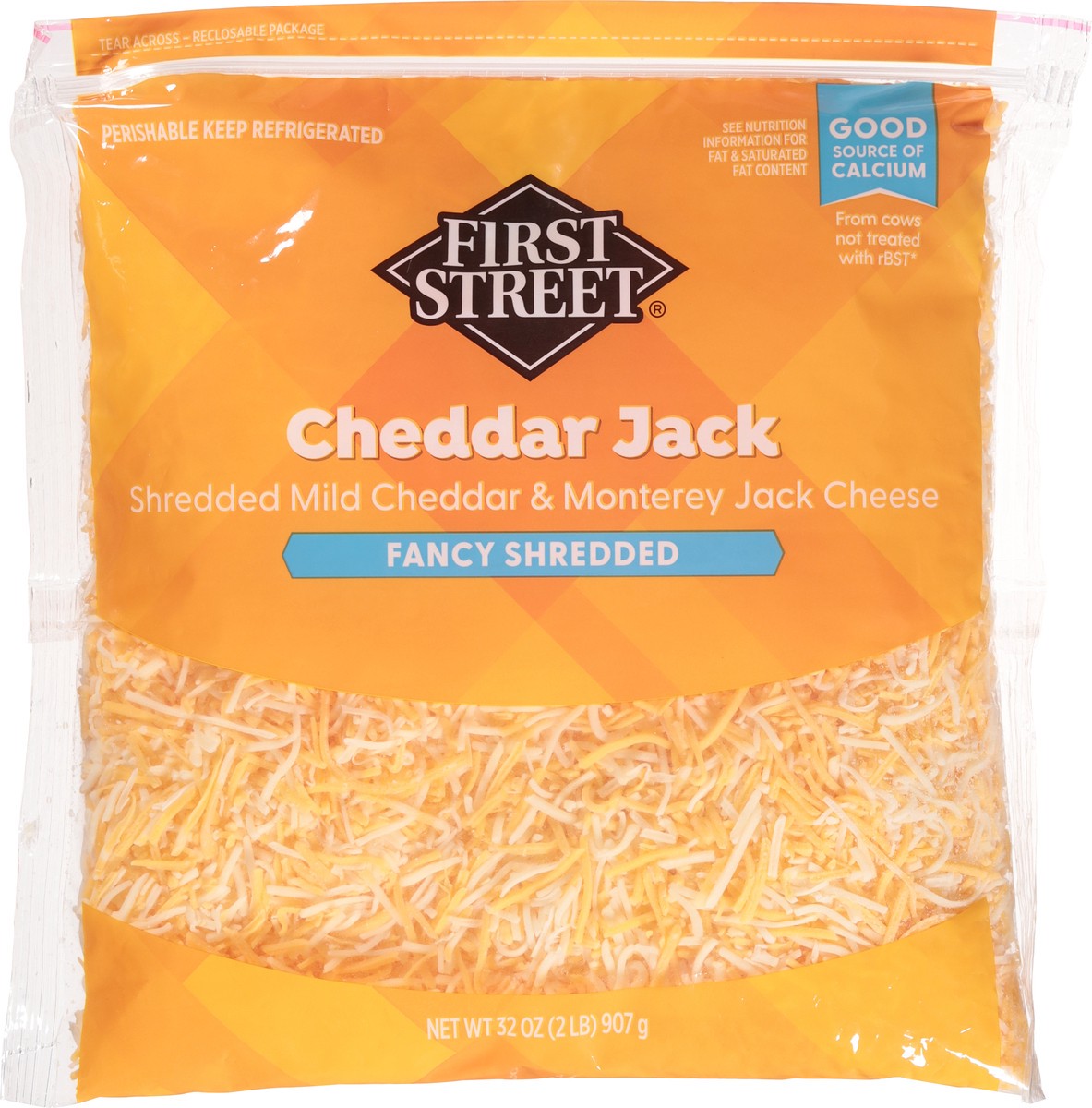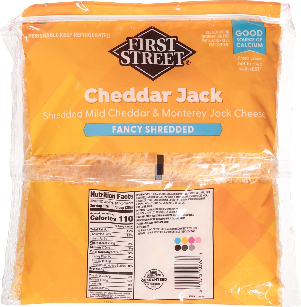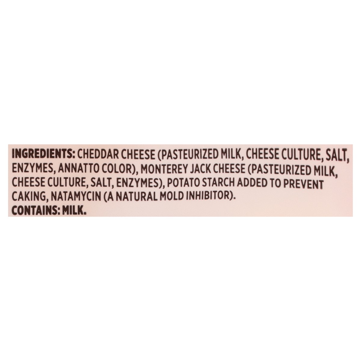Cheddar Cheese (Pasteurized Milk, Cheese Culture, Salt, Enzymes, Annatto Color), Monterey Jack Cheese (Pasteurized Milk, Cheese Culture, Salt, Enzymes), Potato Starch Added to Prevent Caking, Natamyci…