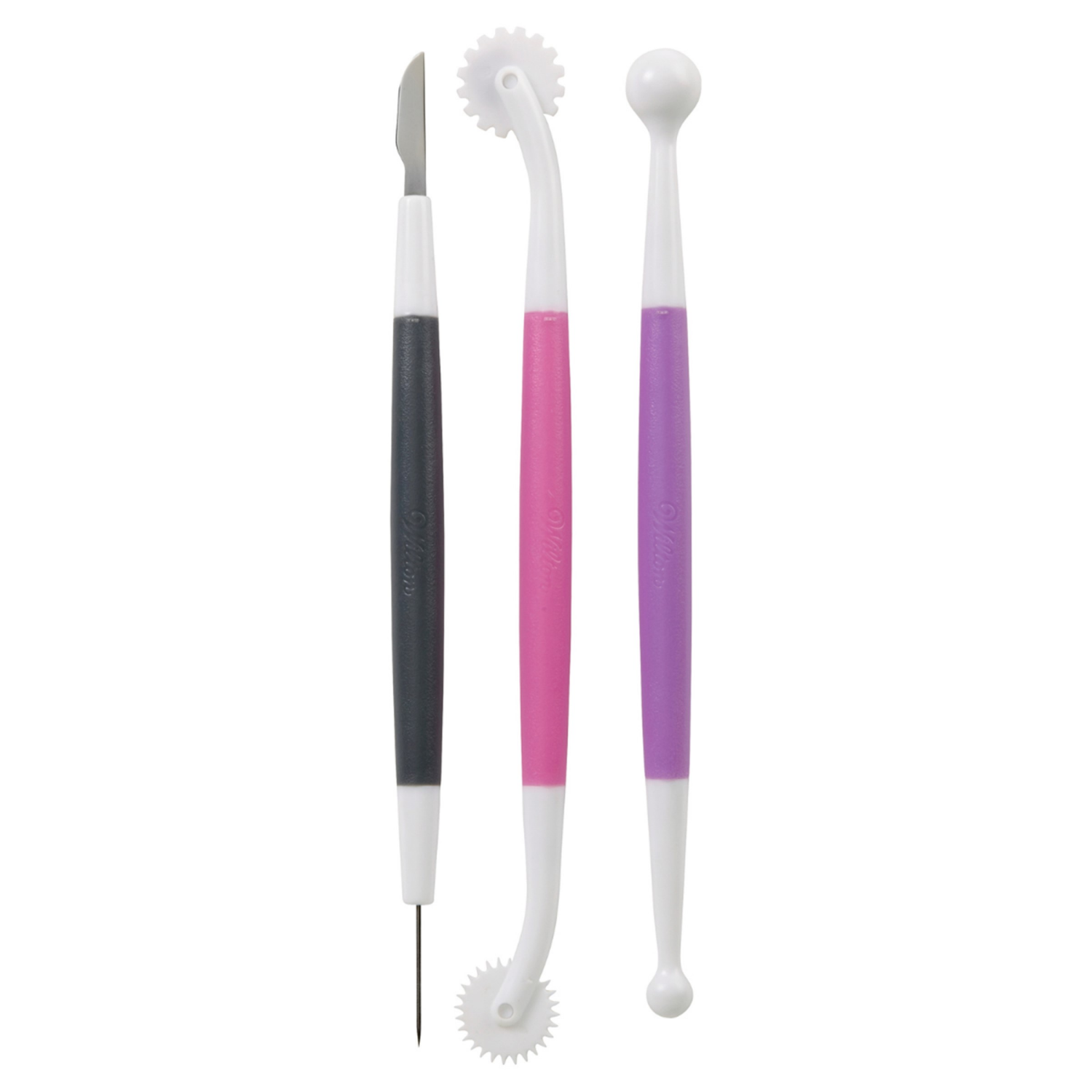 This Wilton 3Piece Fondant Tool Set includes a doubleended ball tool, doubleended needle and knife tool with safety covers, plus a doubleended rolling tool. Ideal for displaying your creativity workin…