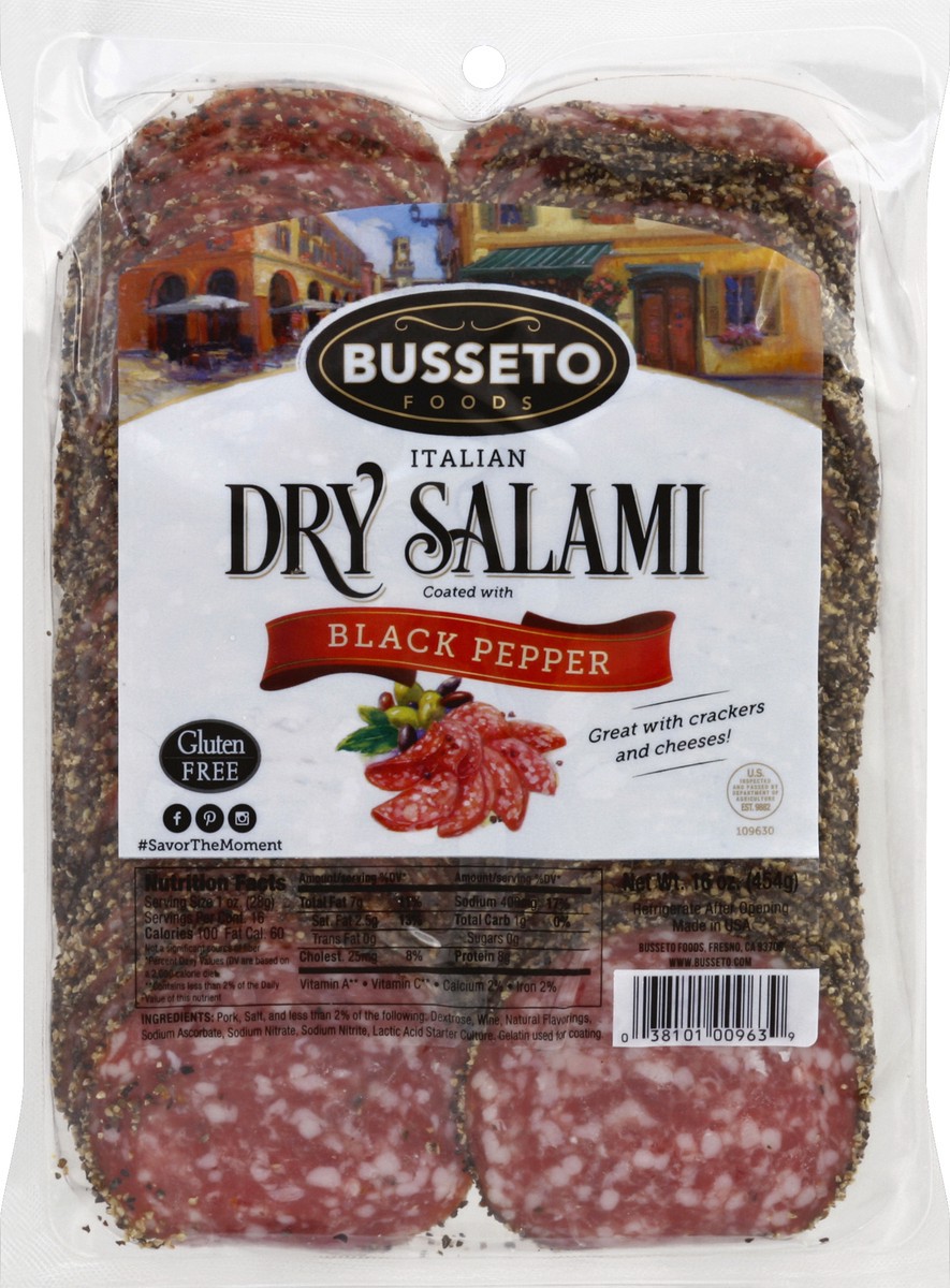Coated with black pepper. Gluten free. Facebook. Pinterest. Instagram. (hashtag)SavorTheMoment. Great with crackers and cheeses! US inspected and passed by Department of Agriculture. www.busseto.com. …