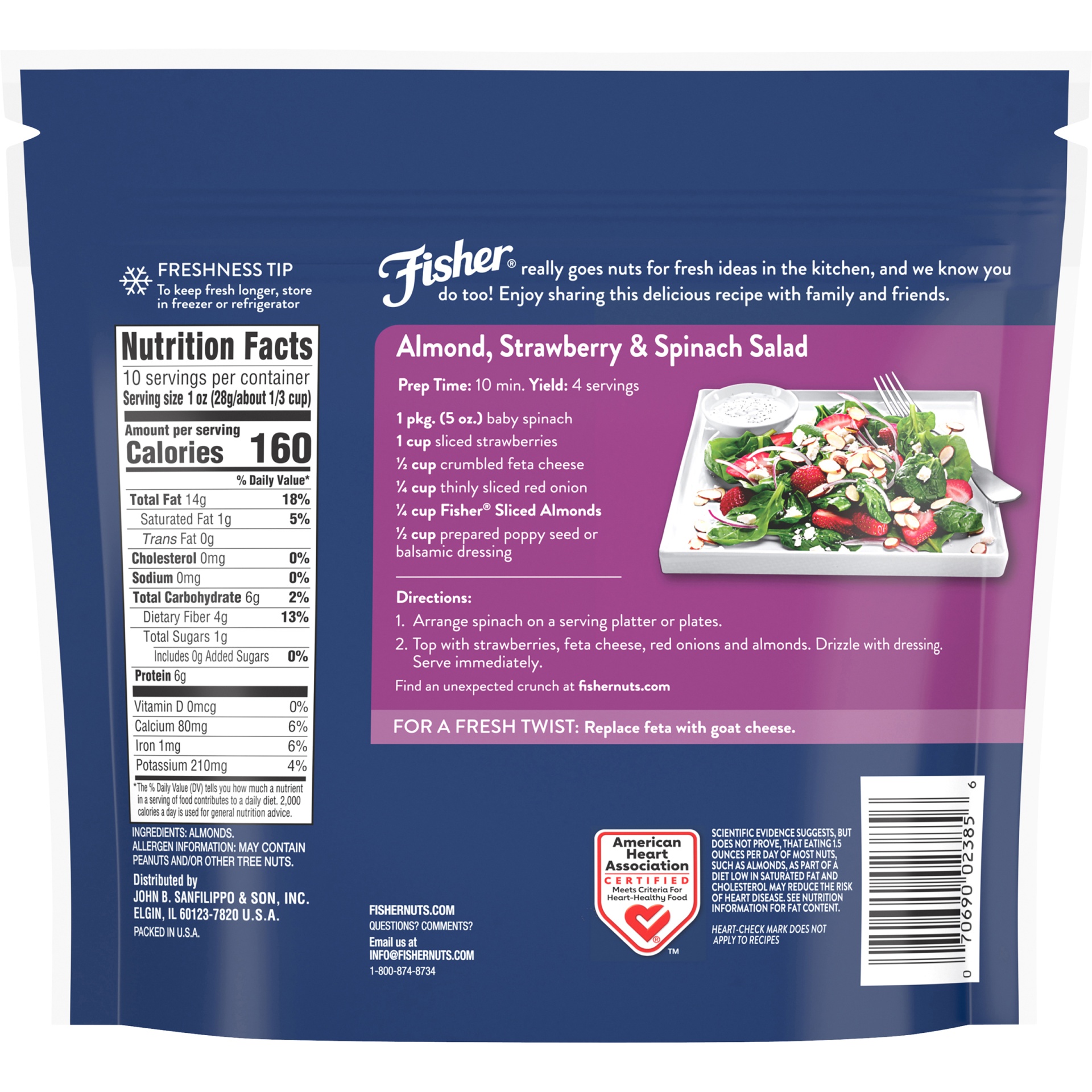 2 2/3 cups approx. Naturally gluten free. Vegan. American Heart Association Certified: Meets criteria for heart-healthy food. See back panel for information on nuts and coronary heart disease. Scienti…
