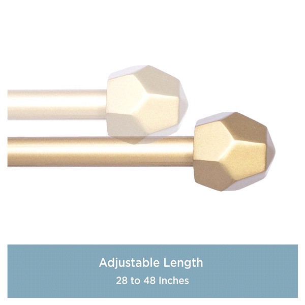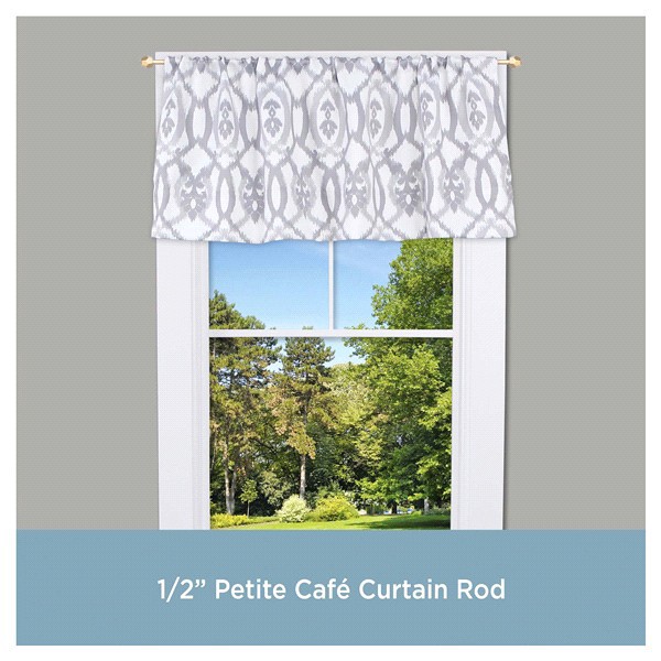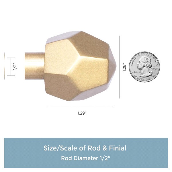 Add a touch of style to your home with the River 1/2" Standard Decorative Window Curtain Rod by Kenney. The 1/2 inch diameter curtain rod in burnished brass features matching decorative geometic shape…