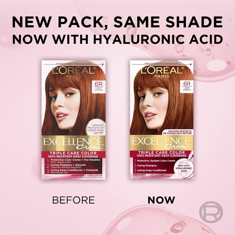 L'Oreal Paris Excellence Triple Protection Permanent Hair Color - 6.3 fl oz - 6R Light Auburn - 1 kit: For All Hair Types, Aluminum-Free