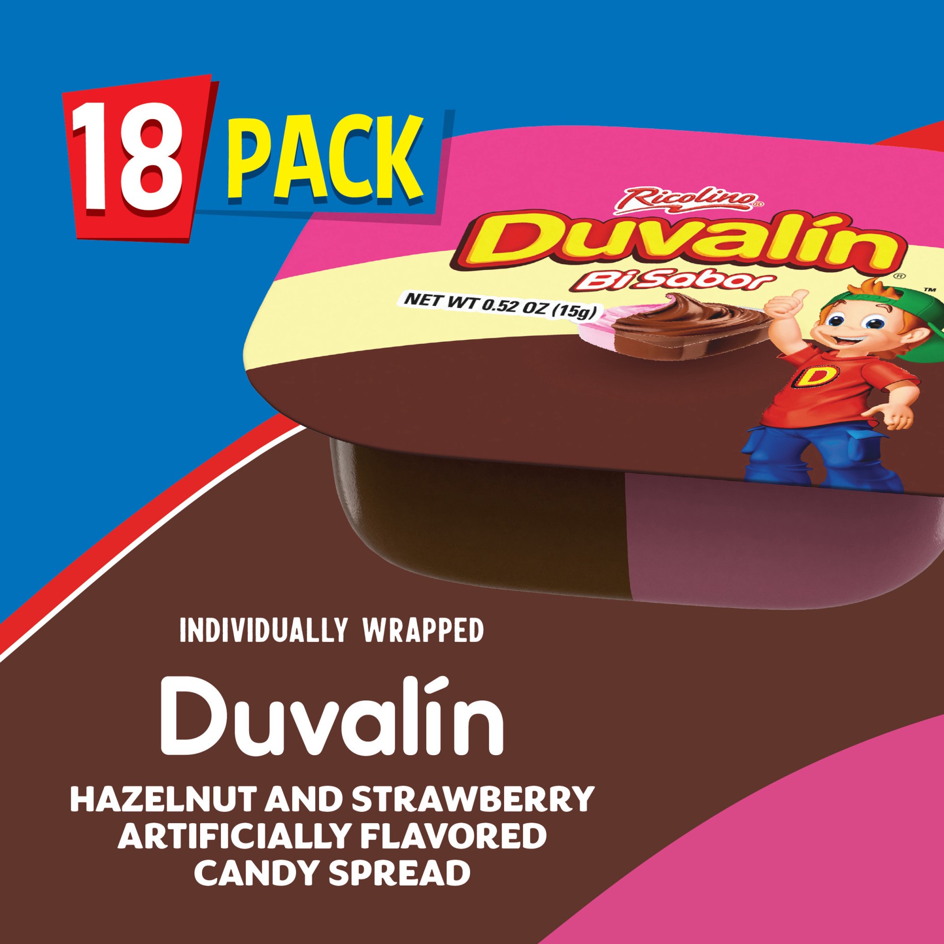 - Sweet Snacking: Delicious Duvalin Hazelnut and Strawberry Artificially Flavored Spread is perfectly portioned candy that is a unique alternative to other treats and desserts.