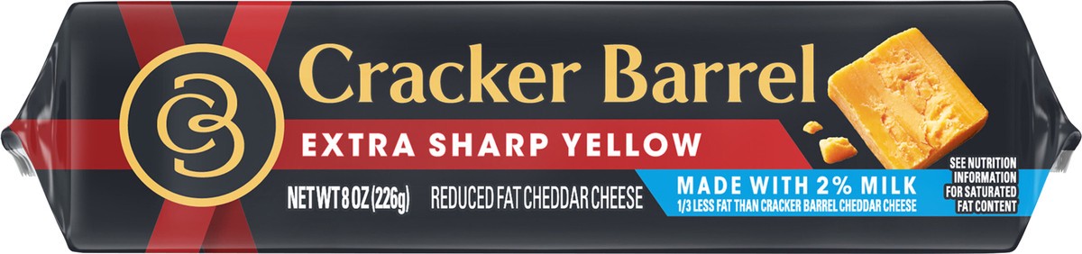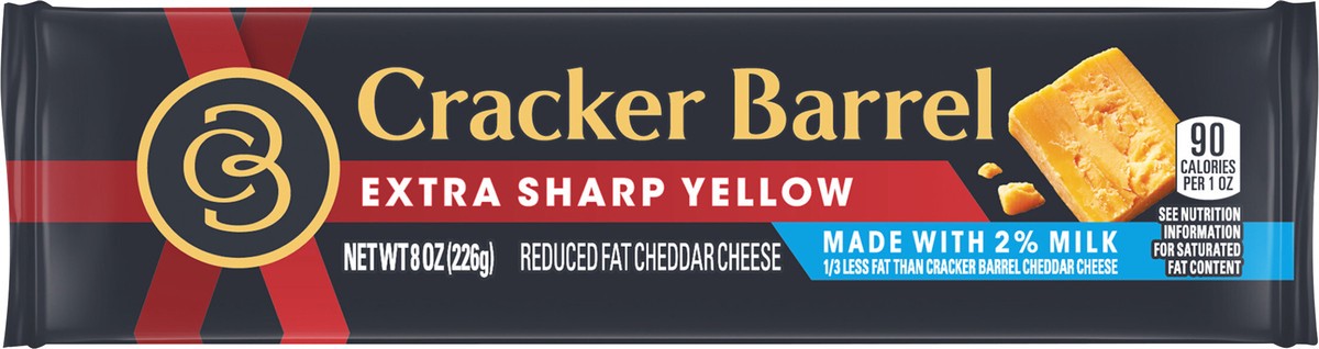 - Cracker Barrel Extra Sharp Yellow Cheddar Cheese Block Made with 2% Milk is from an award-winning cheese maker