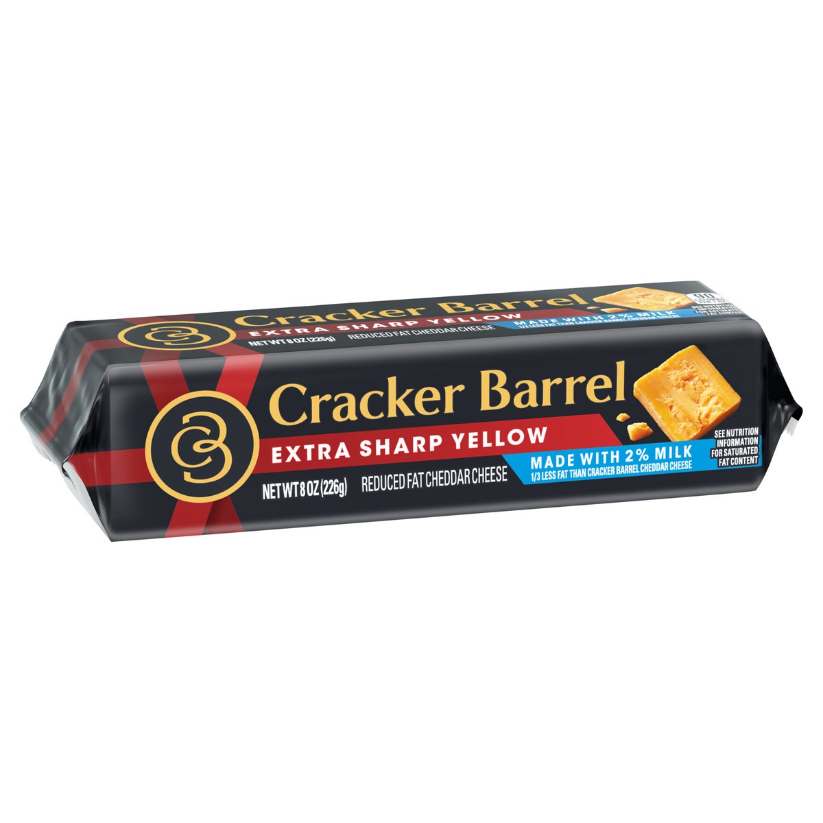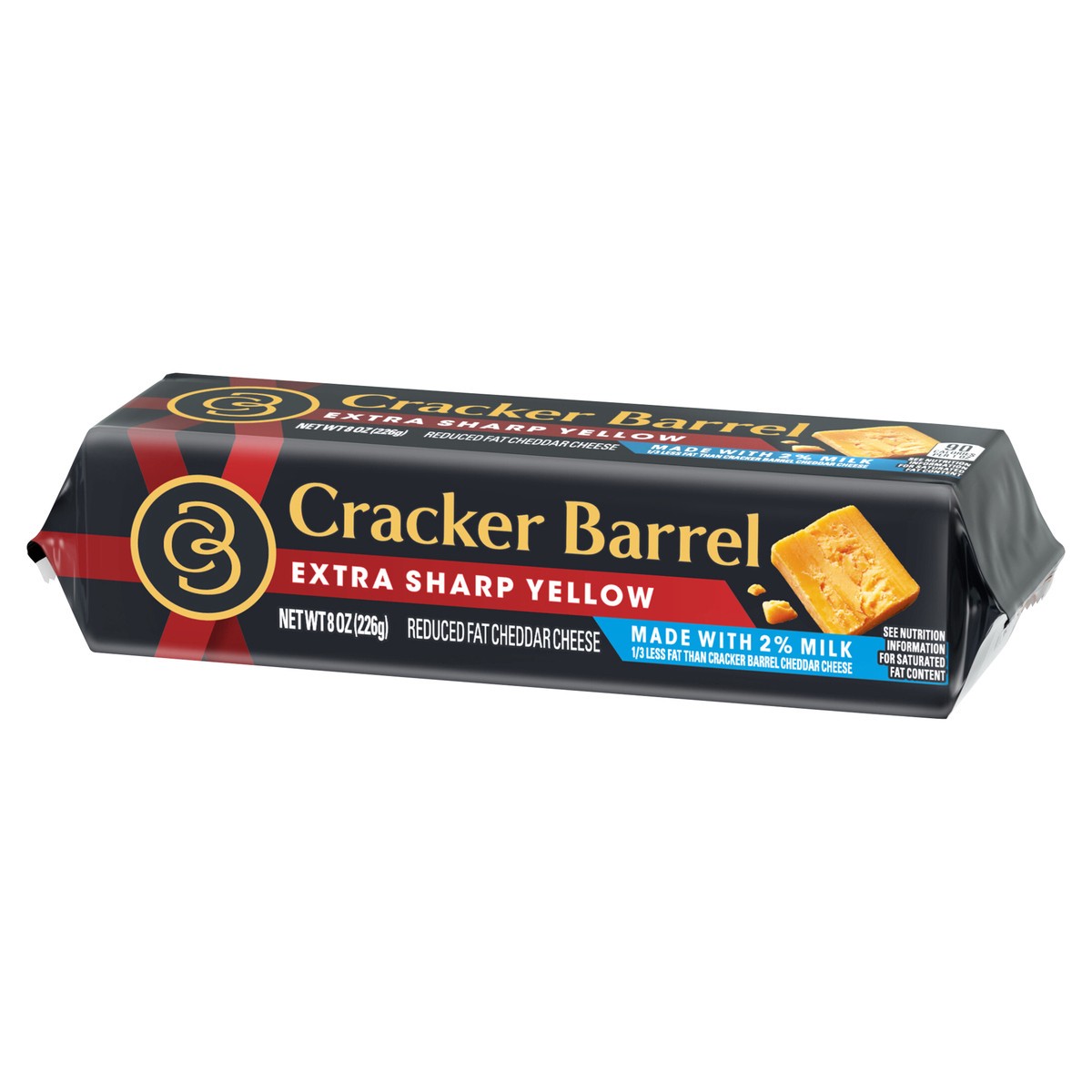 - One 8 oz Cracker Barrel Extra Sharp Yellow Cheddar Cheese Block Made with 2% Milk