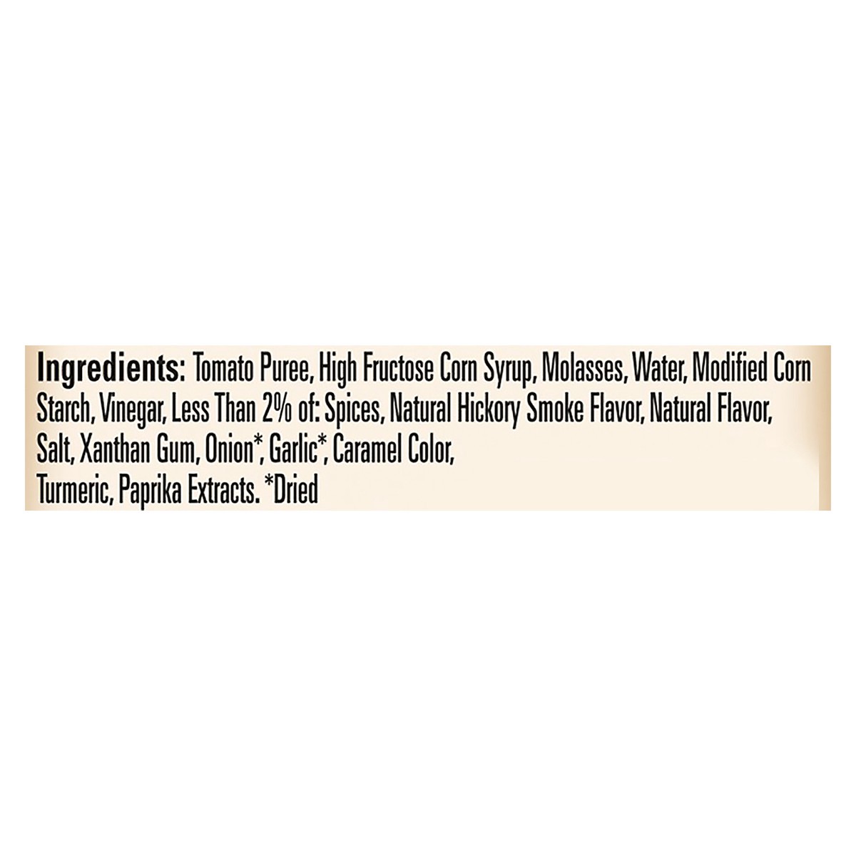 Tomato Puree, High Fructose Corn Syrup, Molasses, Vinegar, Water, Modified Corn Starch, Less than 2% of: Spices, Natural Hickory Smoke Flavor, Natural Flavor, Salt, Xanthan Gum, Onion (Dried), Garlic …