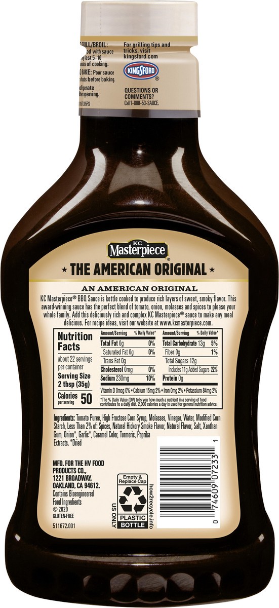 Delicious barbecue always involves a dash of KC Masterpiece. KC Masterpiece Original Barbecue Sauce is kettle cooked with tomato, molasses and spices for a unique thick, rich, bold flavor. This gluten…