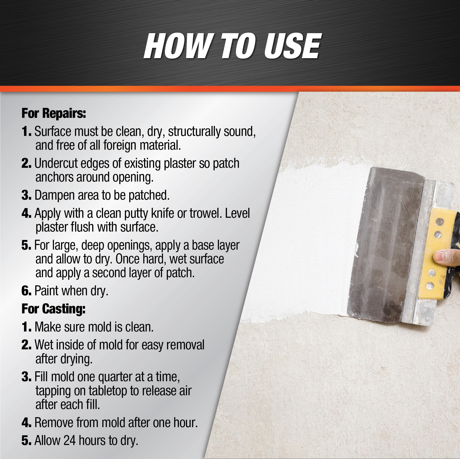 Plaster of Paris is ideal for filling holes and cracks in interior plaster ceilings and walls. Plaster powder is also great for crafts like mold making, casting sculpted figures, and other hobby and c…