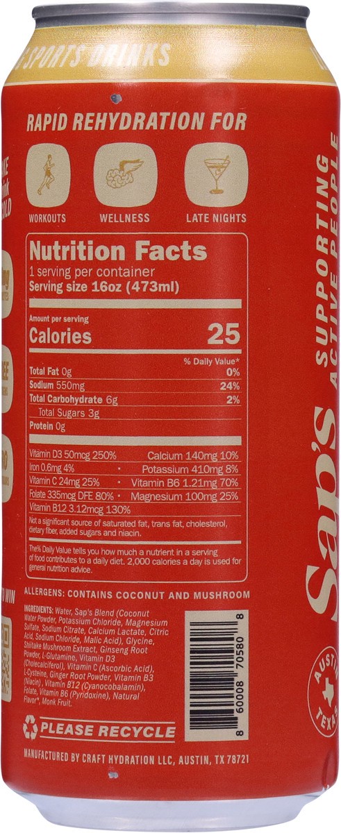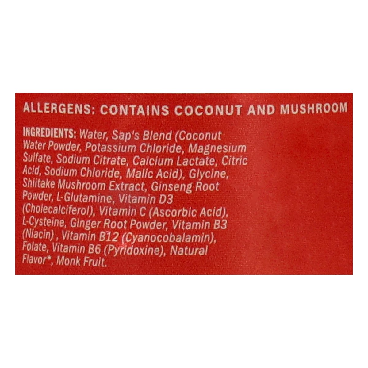 Water, Sap''s Blend (Coconut Water Powder, Potassium Chloride, Magnesium Sulfate, Sodium Citrate, Calcium Lactate, Citric Acid, Sodium Chloride, Malic Acid), Glycine, Shiitake Mushroom Extract, Ginsen…