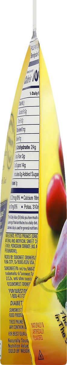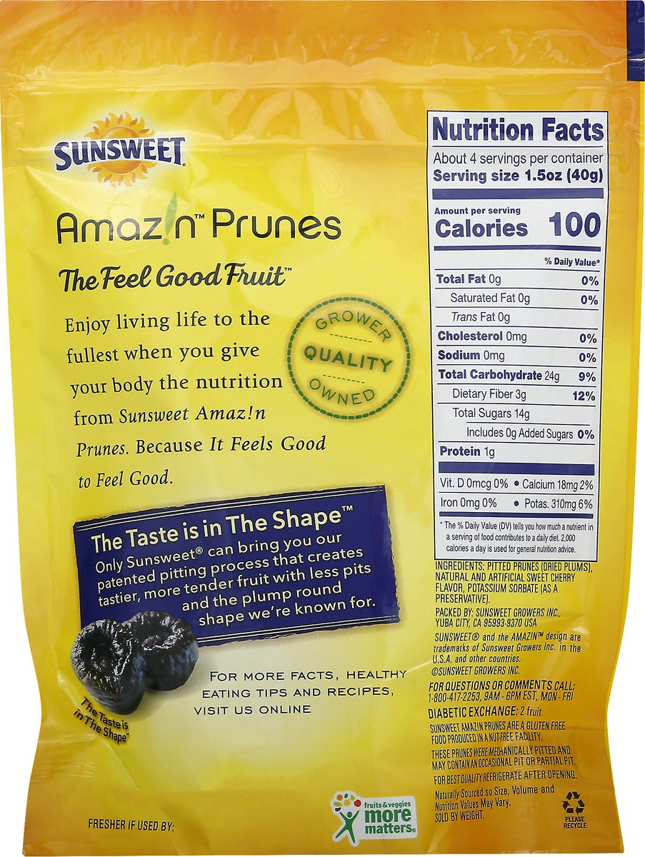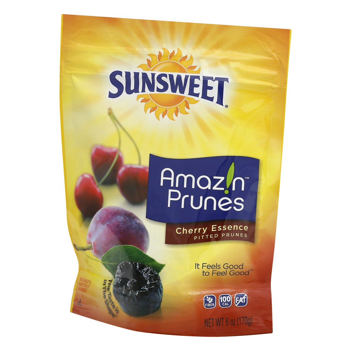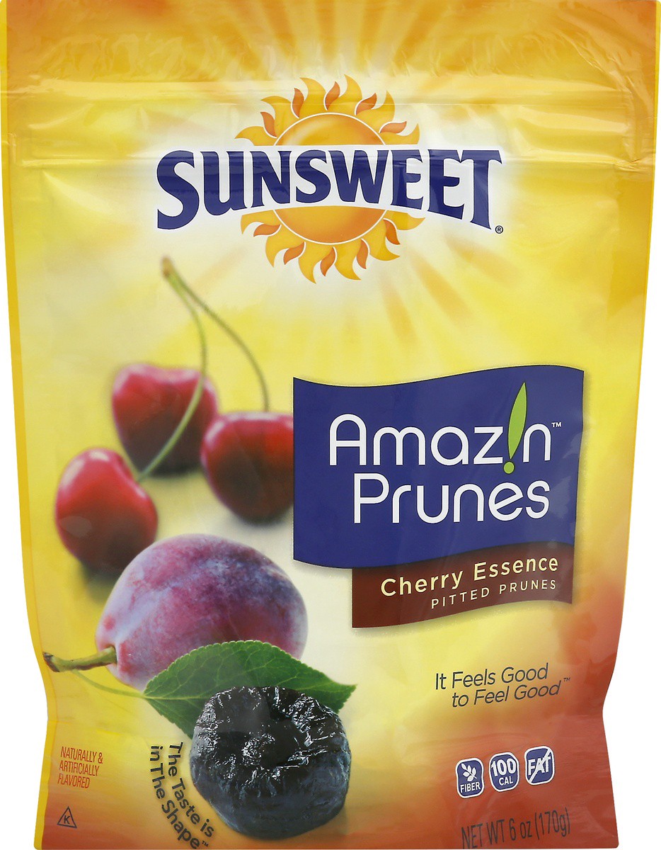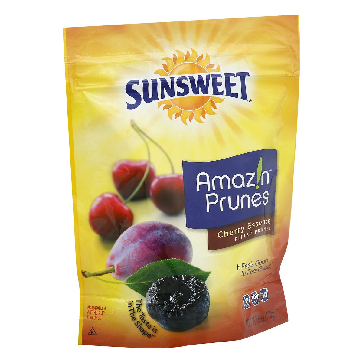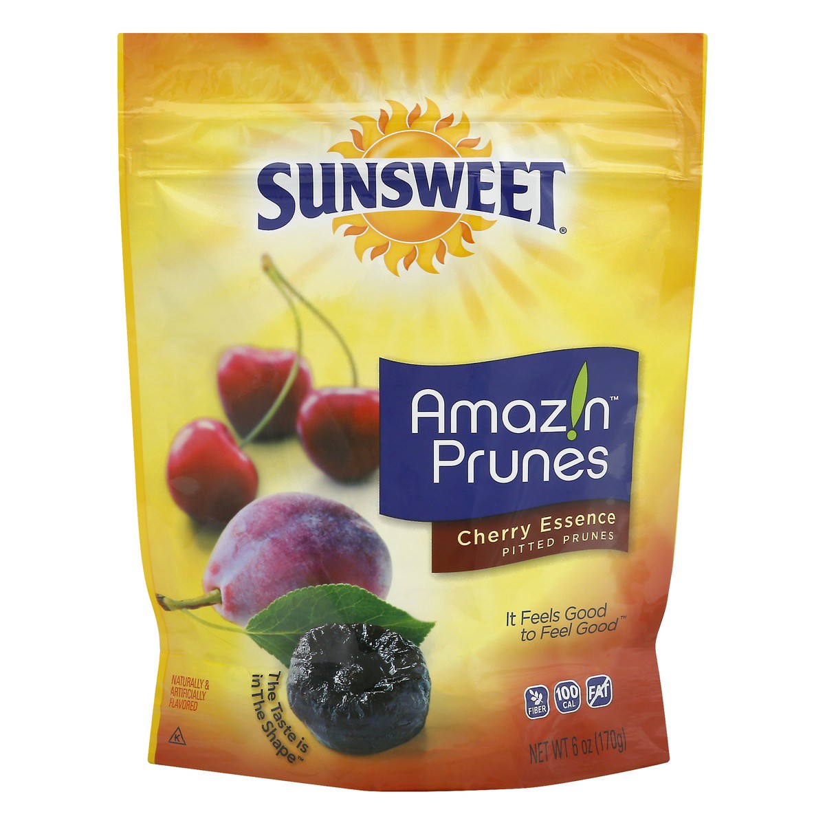 Pitted Prunes (Dried Plums), Natural and Artificial Sweet Cherry Flavor, Potassium Sorbate (as a Preservative).