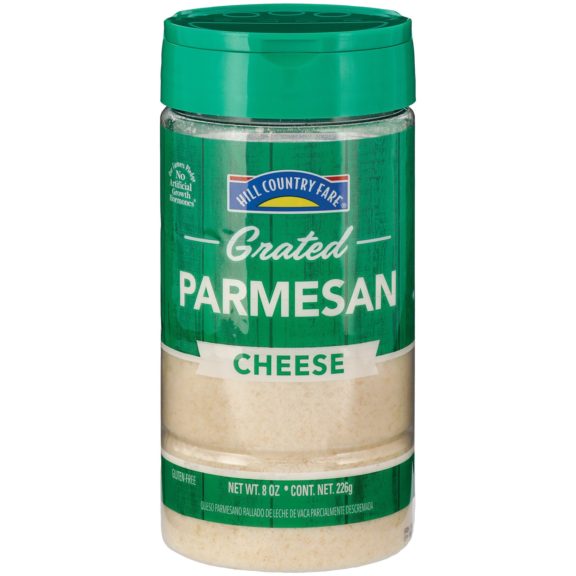 Your next big batch of spaghetti and meatballs calls for some generous sprinkles of Hill Country Fare parmesan cheese. Grated and easy to shake out of the cap, it's made with part-skim milk that has n…