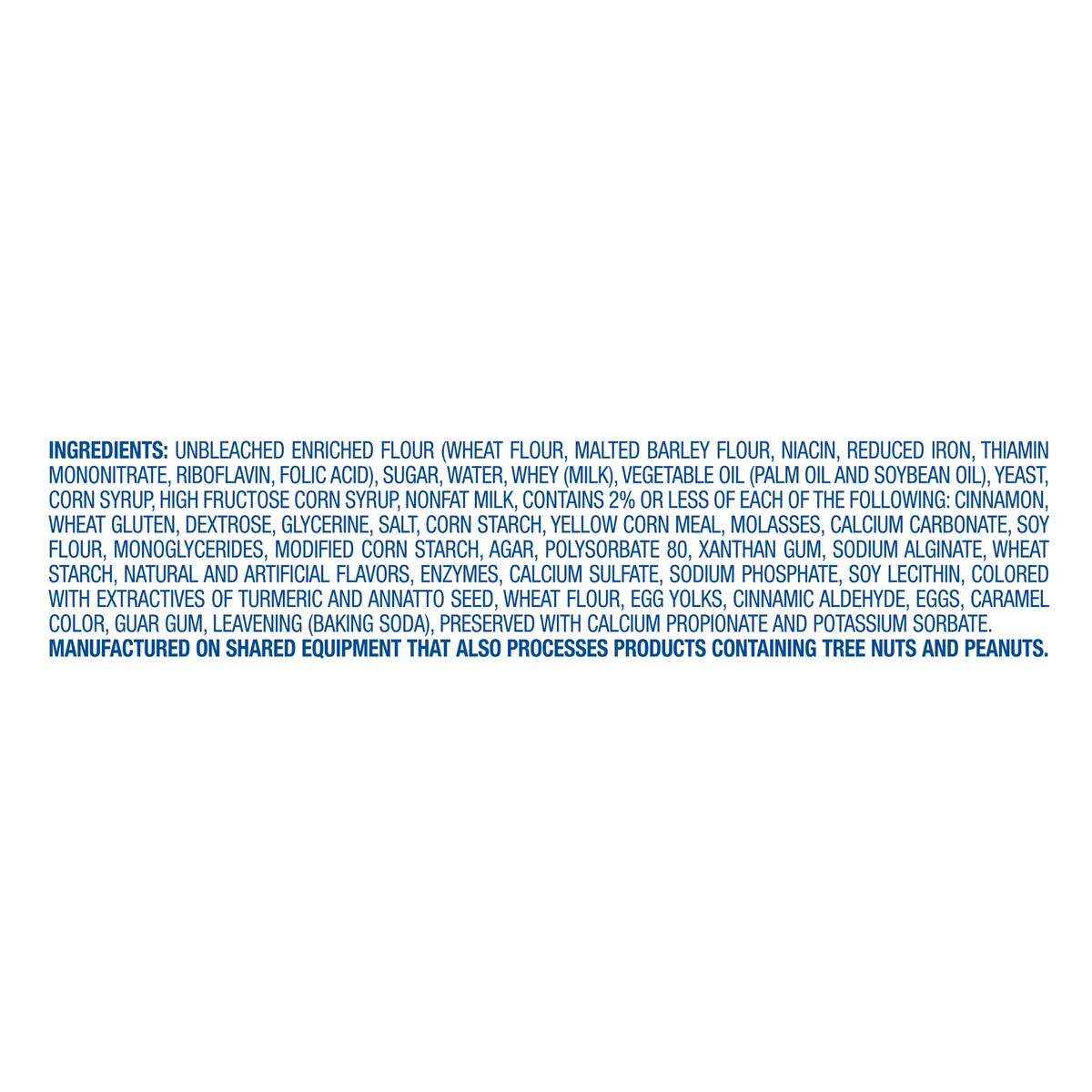 Unbleached Enriched Flour (Wheat Flour, Malted Barley Flour, Niacin, Reduced Iron, Thiamin Mononitrate, Riboflavin, Folic Acid), Sugar, Water, Whey (Milk), Vegetable Oil (Palm Oil and Soybean Oil), Ye…