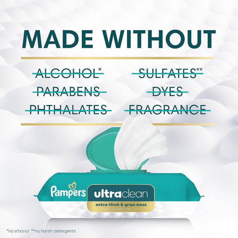 - TEXTURED CLOTH: Pampers Ultraclean Baby Wipes grip the mess for a better clean* without fear of tearing (*vs. the leading U.S. Value Brand)