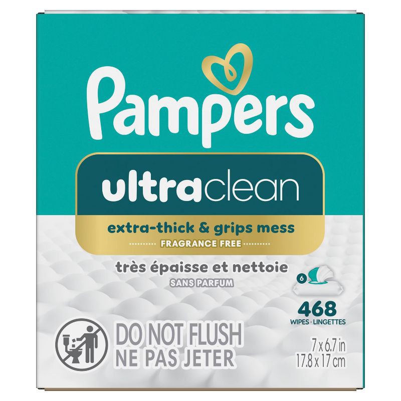 - 468 Wipes in 6 Packs of Pampers Ultraclean Baby Wipes, Hypoallergenic, Unscented, 99% Water, 100% Plant Based Plastic-Free Baby Wipes