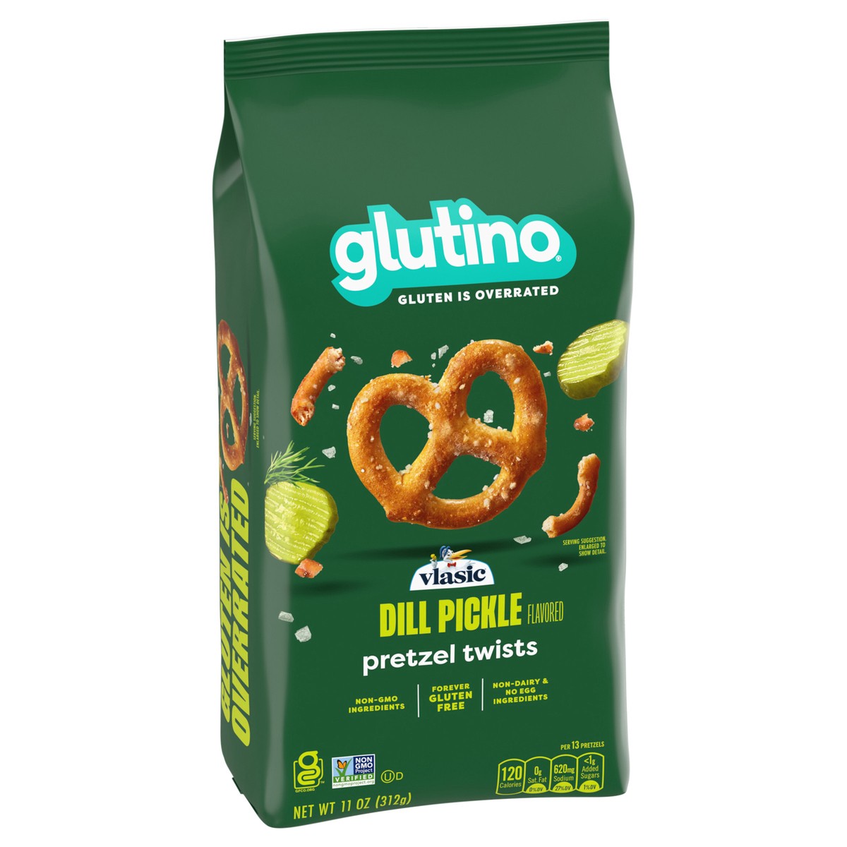 - Enjoy toasty pretzel twists bursting with the bold and zesty Vlasic dill pickle flavor you love without the gluten
