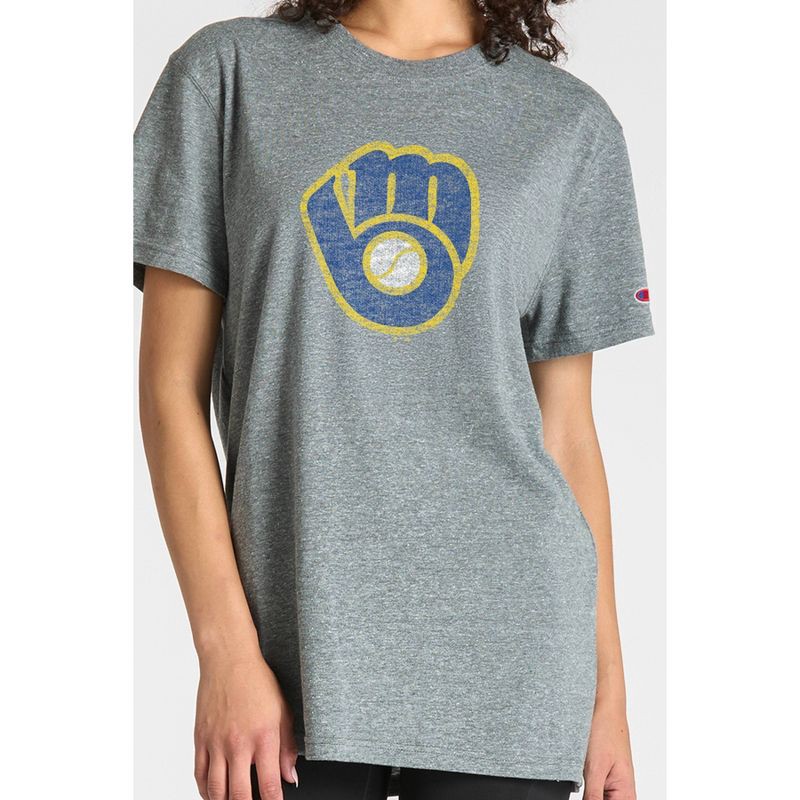 MLB Milwaukee Brewers Men's Champion Gray Coop Triblend T-Shirt - S