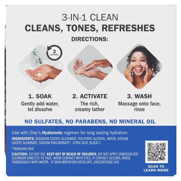 Olay Cleansing Melts + Hyaluronic Face Cleanser, Water-Activated Face Wash Cleans, Tones, and Refreshes Skin