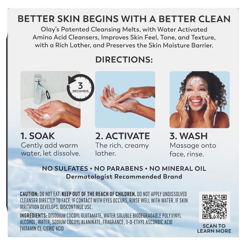 - 3 EASY STEPS: 1) Soak: Gently add warm water and let the pad dissolve for 3 seconds. 2) Activate: Enjoy the rich, creamy lather. 3) Wash: Massage onto your face and rinse.