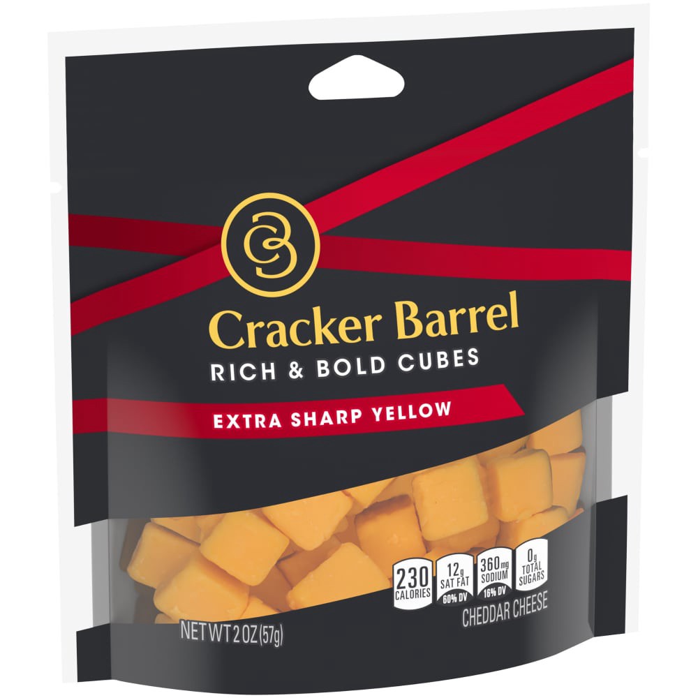 Cracker Barrel Cubes, Extra Sharp Yellow Cheddar, 2 oz Pouch