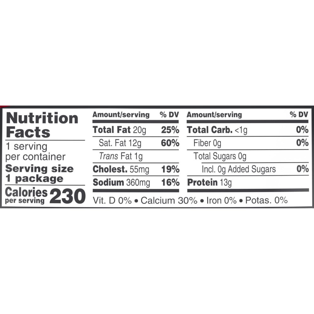 Cheddar Cheese (Pasteurized Milk, Cheese Culture, Salt, Enzymes, Annatto [Color]), Natamycin (A Natural Mold Inhibitor).