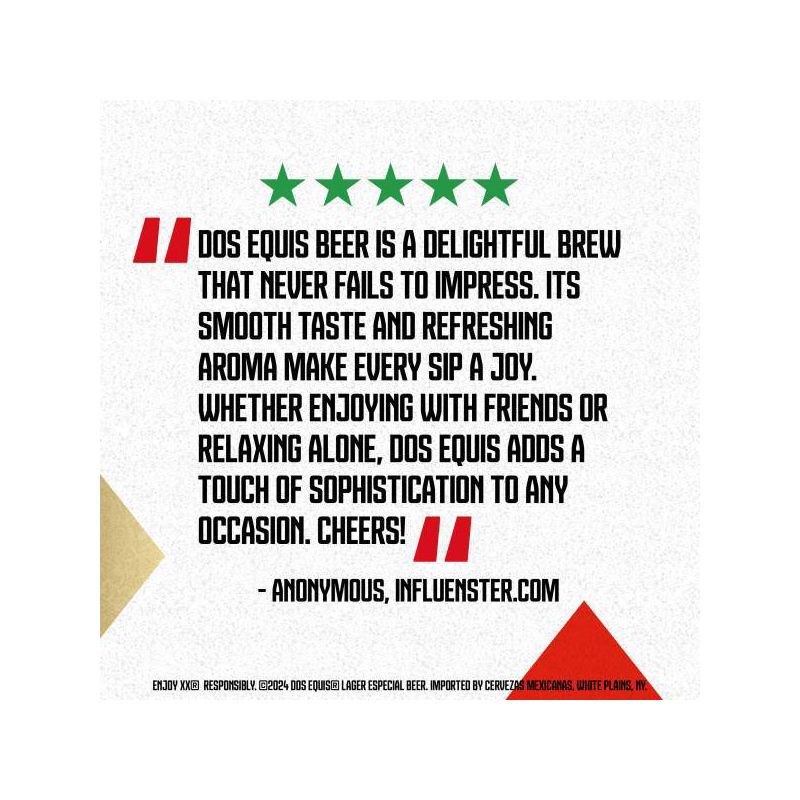 - Enjoy Dos Equis Lager Especial Import Beer in bottles or cans