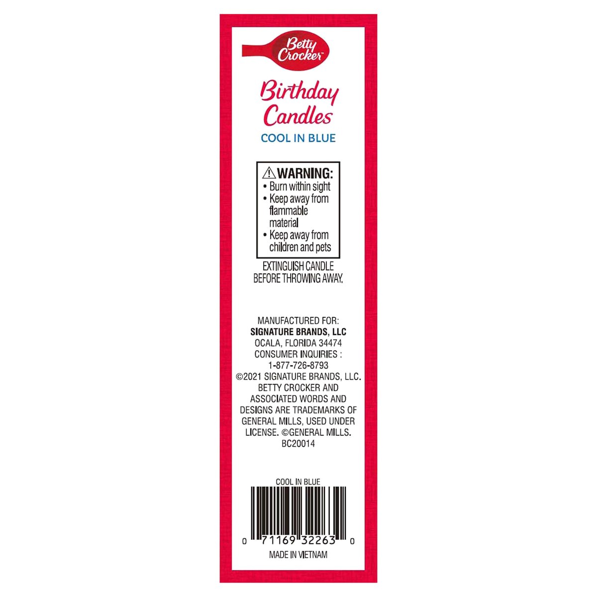 Betty Crocker Cool in Blue pillar candles celebrate all occasions. These tall candles will be the life of the party at your next celebration. Pack contains 16 candles, 6 tall