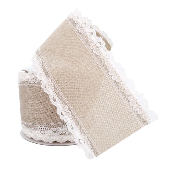 2.5" X 3yd. Faux Linen & Lace Wired Ribbon By Celebrate It