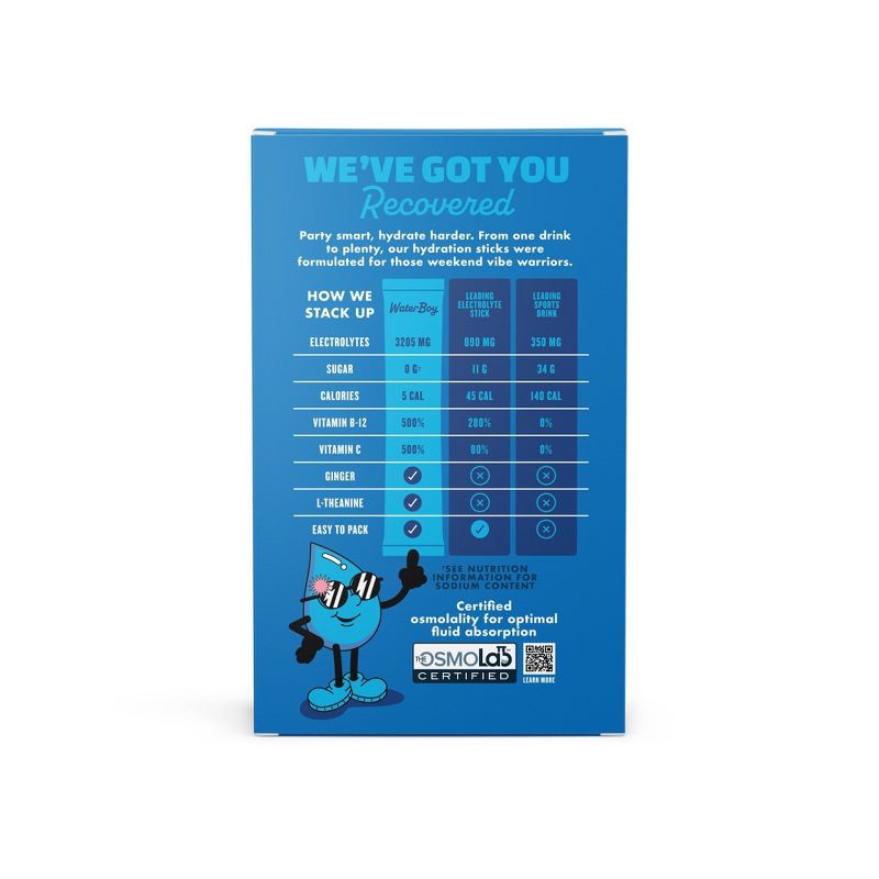 One stick. One mission. Bounce back faster. Waterboy Weekend Recovery Strawberry Lemonade loads 3,187mg of electrolytes plus L-theanine, ginger, and vitamins into a single sugar-free packet made speci…