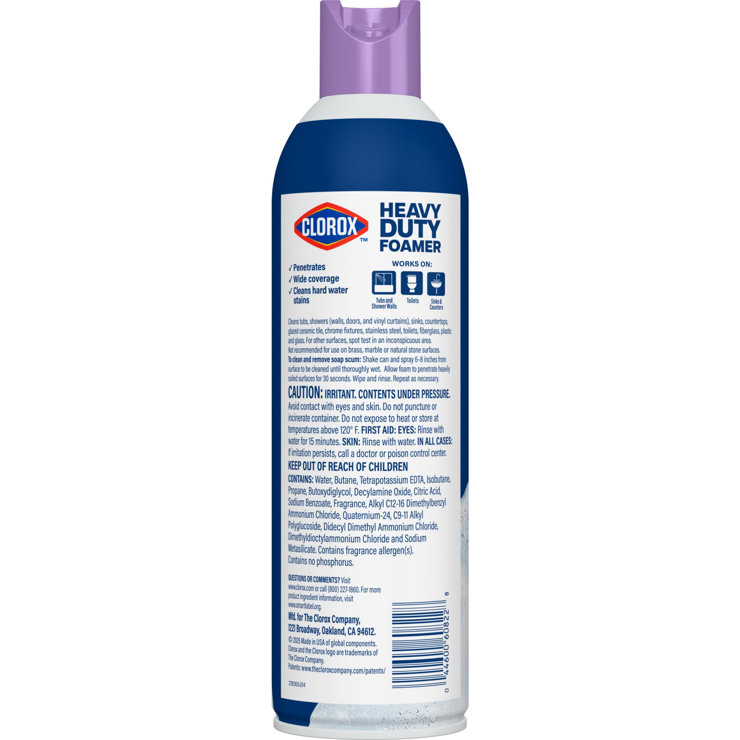 Spray, wipe and rinse away tough soap scum and grime with Clorox Heavy Duty Bathroom Foamer. This soap scum remover and bathroom cleaner delivers wide foam coverage in cracks and crevices, leaving beh…