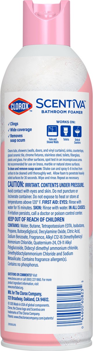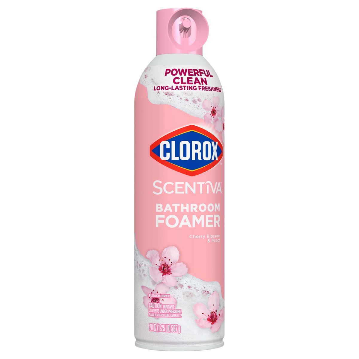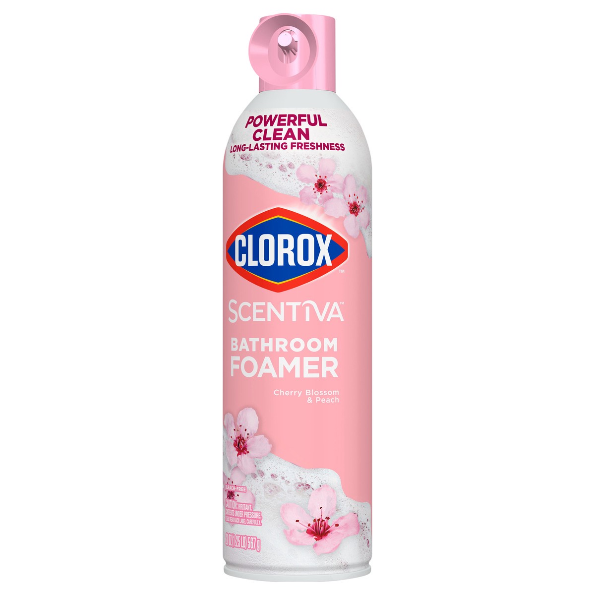 Experience the delicate balance of Cherry Blossom and Peach notes from our thoughtfully curated Clorox Scentiva fragrances. Clorox Scentiva Bathroom Foamer removes soap scum with a dual action foam th…