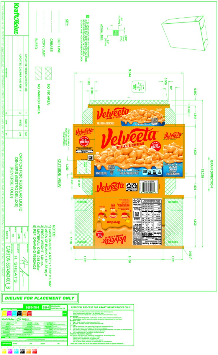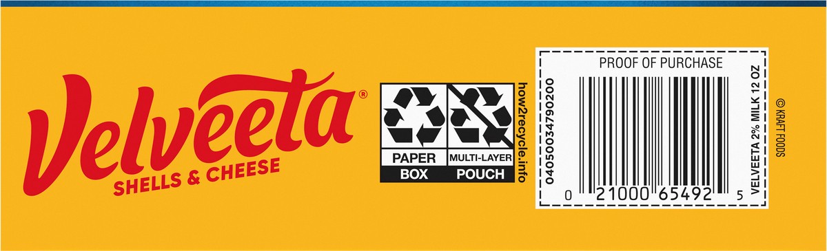 Velveeta Shells and Cheese Mac and Cheese, 1 Box, for Easy Dinner or Dinner Sides, with 2% Milk Cheese, Made with Real Cheese, 12 oz