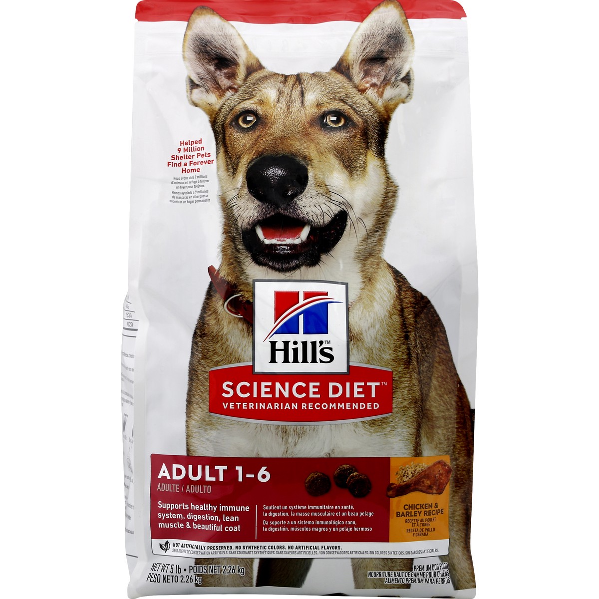Chicken, Whole Grain Wheat, Cracked Pearled Barley, Whole Grain Sorghum, Whole Grain Corn, Corn Gluten Meal, Chicken Meal, Chicken Fat, Chicken Liver Flavor, Dried Beet Pulp, Soybean Oil, Pork Flavor,…