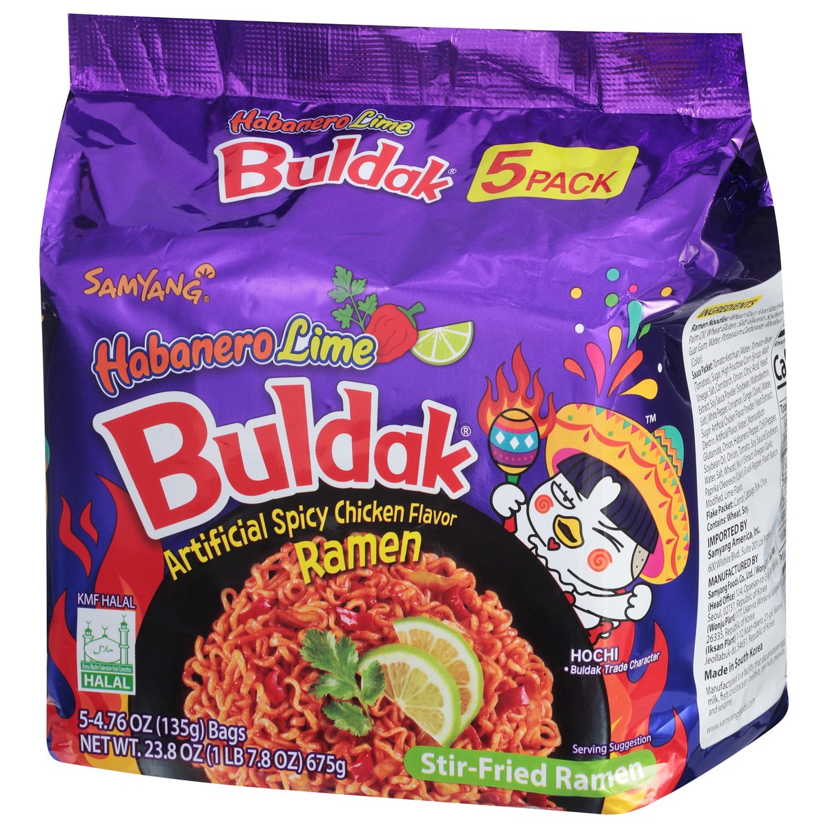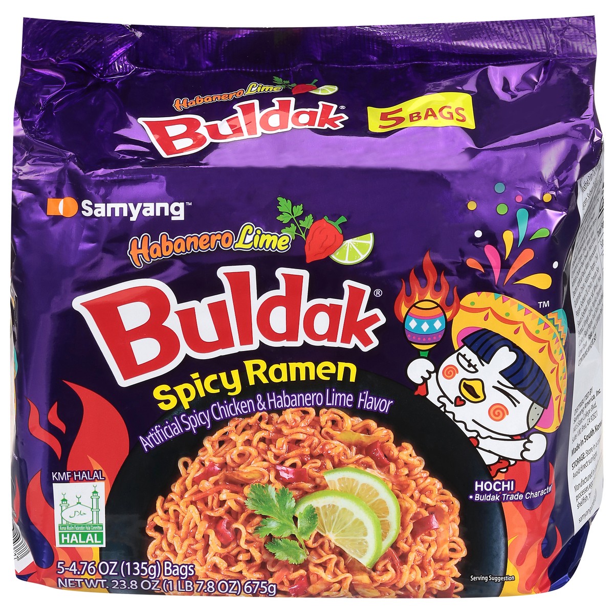 Samyang Habanero Lime Ramen 5 count Pouches. Instant premium ramen noodles with a zesty habanero lime flavor.