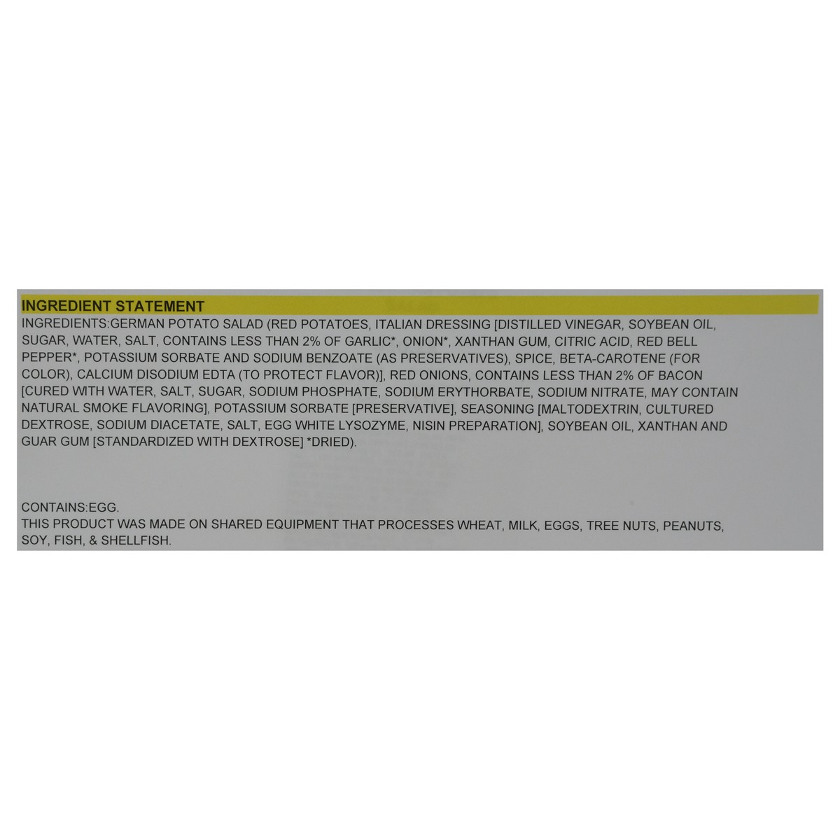 German Potato Salad (Red Potatoes, Italian Dressing [Distilled Vinegar, Soybean Oil, Sugar, Water, Salt, Contains Less than 2% of Garlic (Dried), Onion (Dried), Xanthan Gum, Citric Acid, Red Bell Pepp…