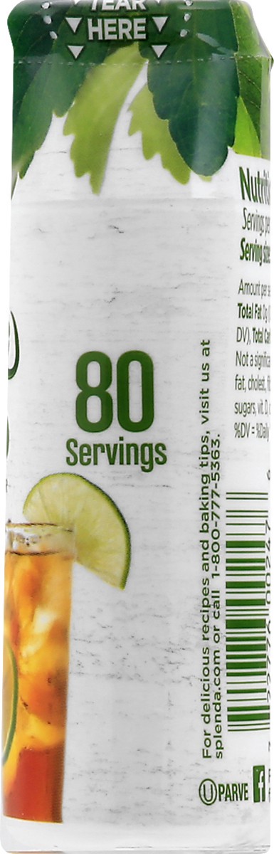 Zero calorie sweetener 0 sugar, calories, carbs. Keto. 50 servings. Suitable for people with diabetes. splenda.com. Follow us on Facebook: facebook.com/splenda. For delicious recipes and baking tips, …